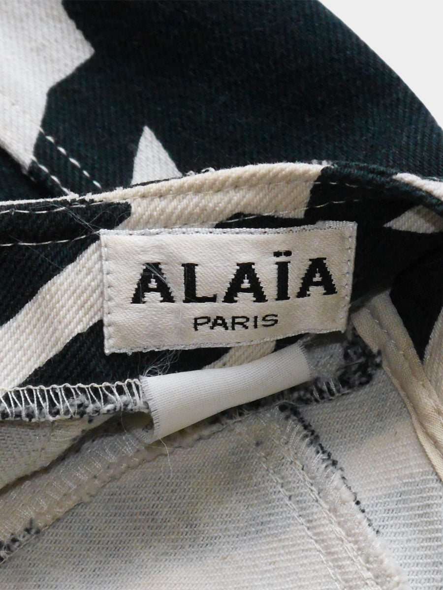 A rare and very well documented Alaïa "Tati" mini dress from Spring 1991. The striking gingham pattern was inspired by the logo of french department store Tati. The dress features a bustier top with support wire and cut-outs at both sides. It is ultrashort and closes with an intricate corset lacing and buckle closures at the back. 100% cotton, denim quality. Made in France. Highly collectible.