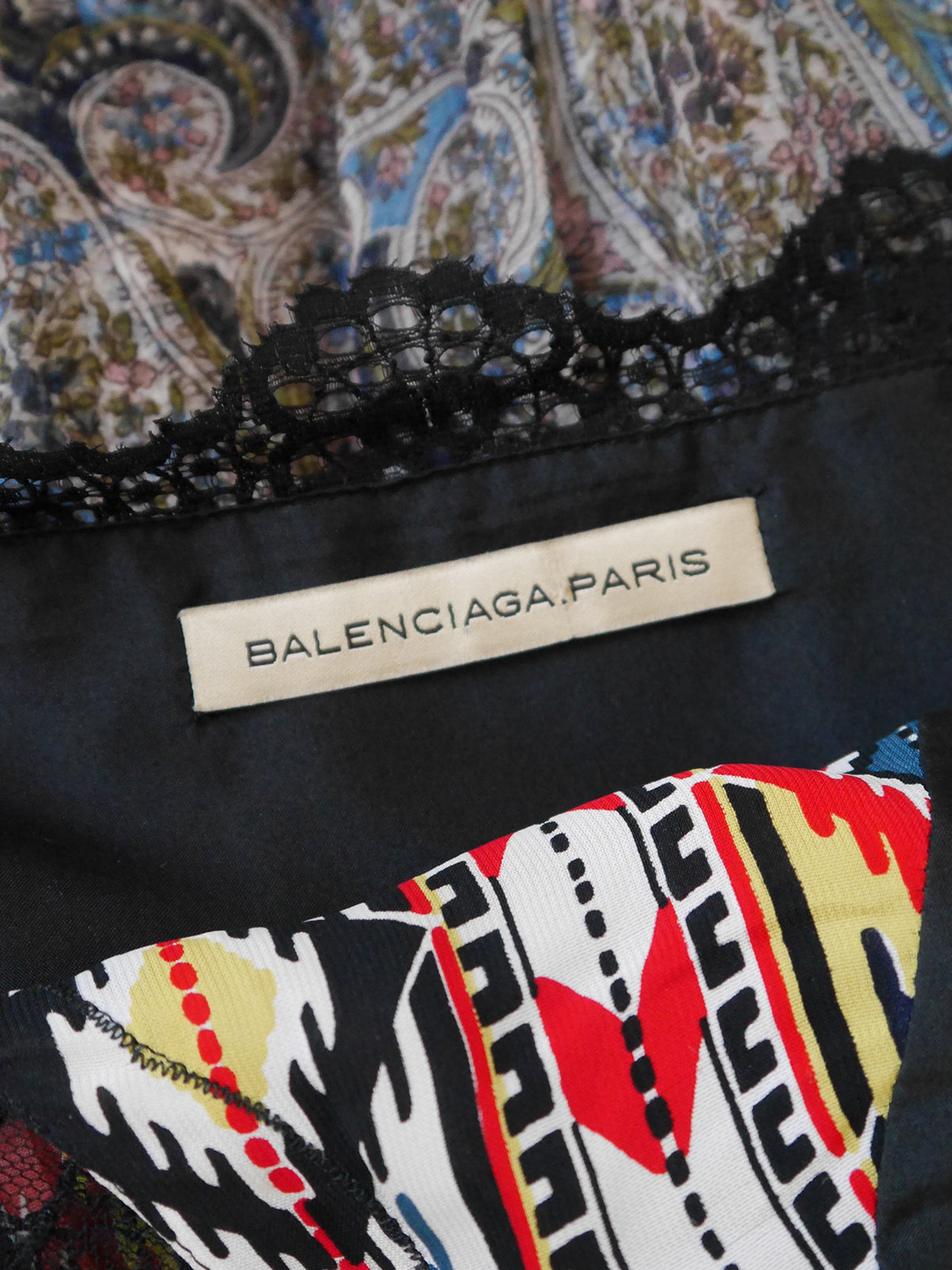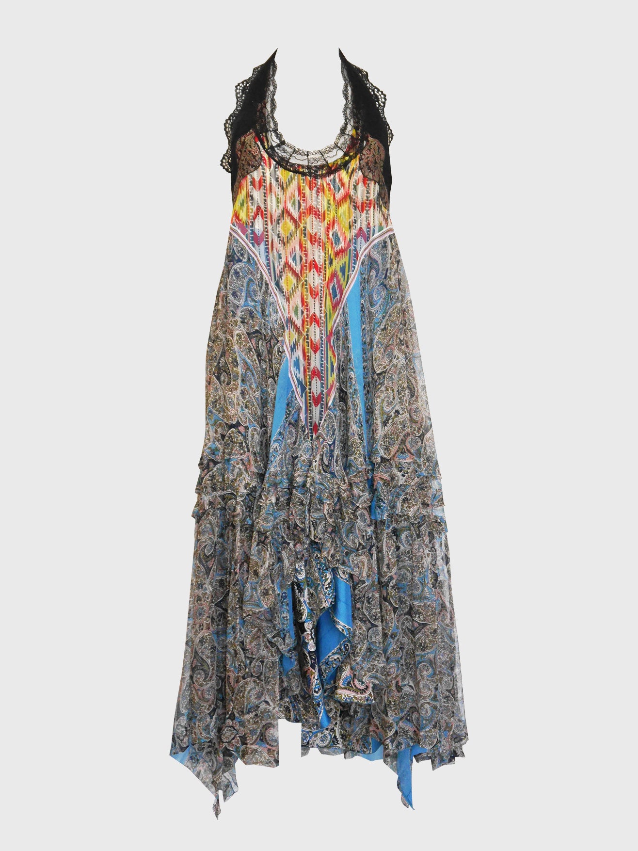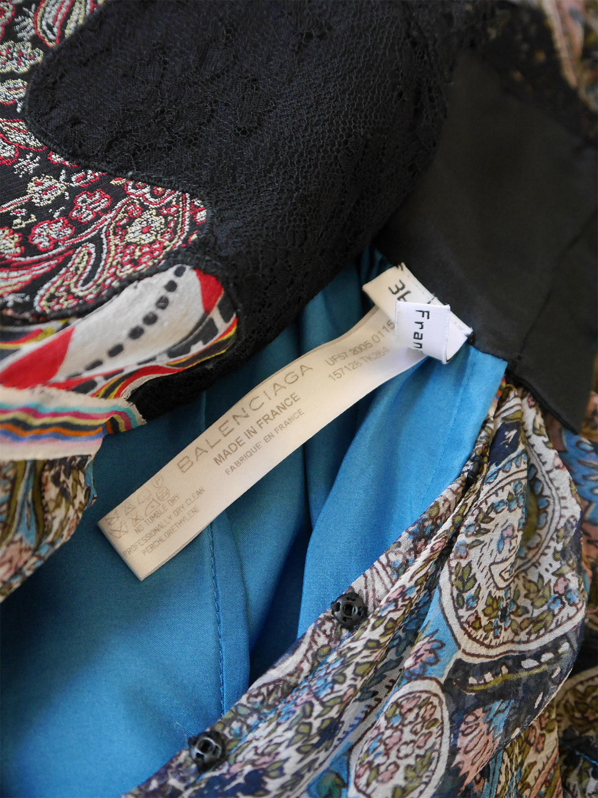 BALENCIAGA by Nicolas Ghesquière 2005 Ikat Paisley Silk & Lace Peasant Maxi Dress