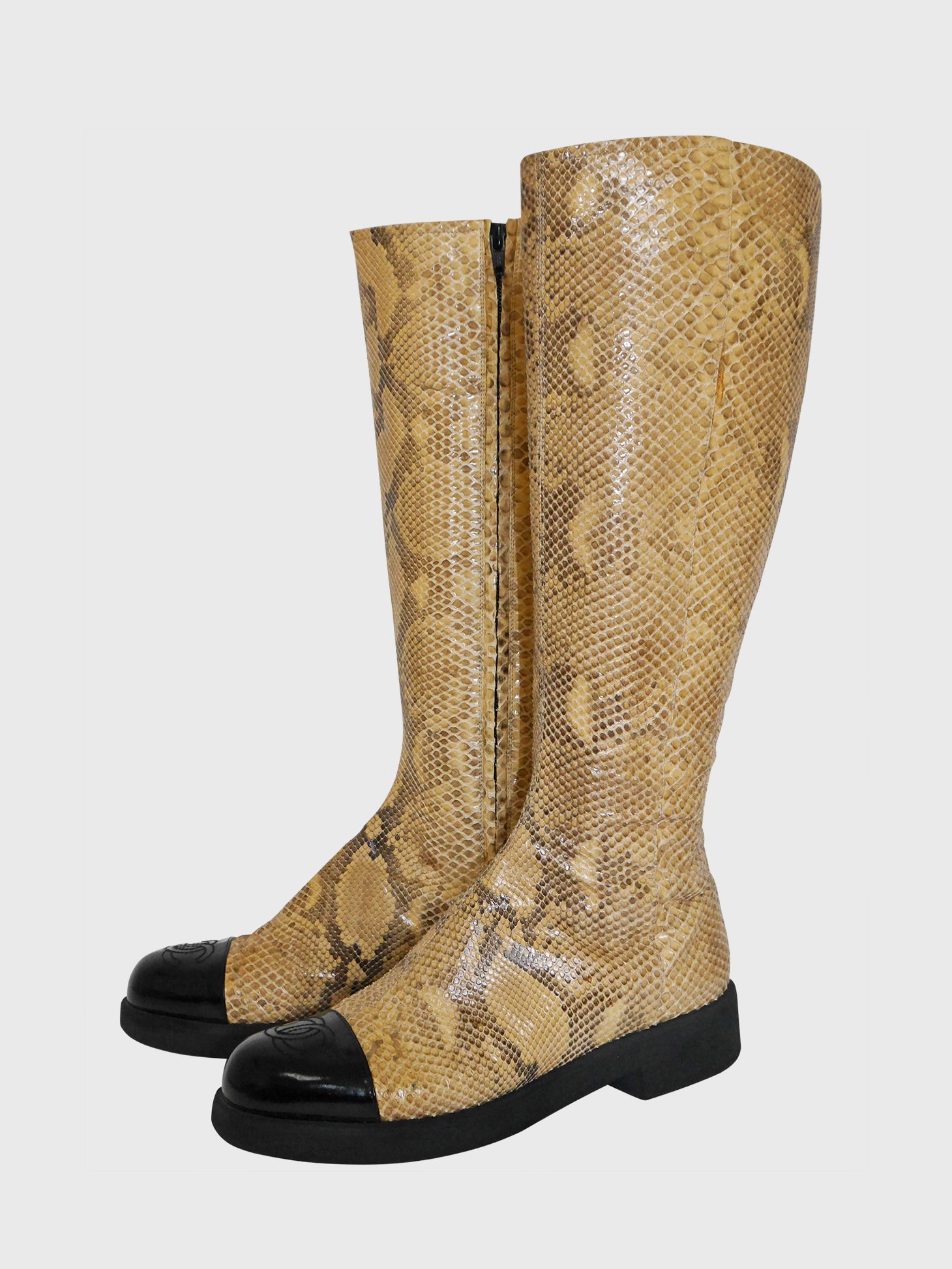 CHANEL Spring 1996 Vintage CC Logo Python Snake Skin Boots Size EU 37,5-38