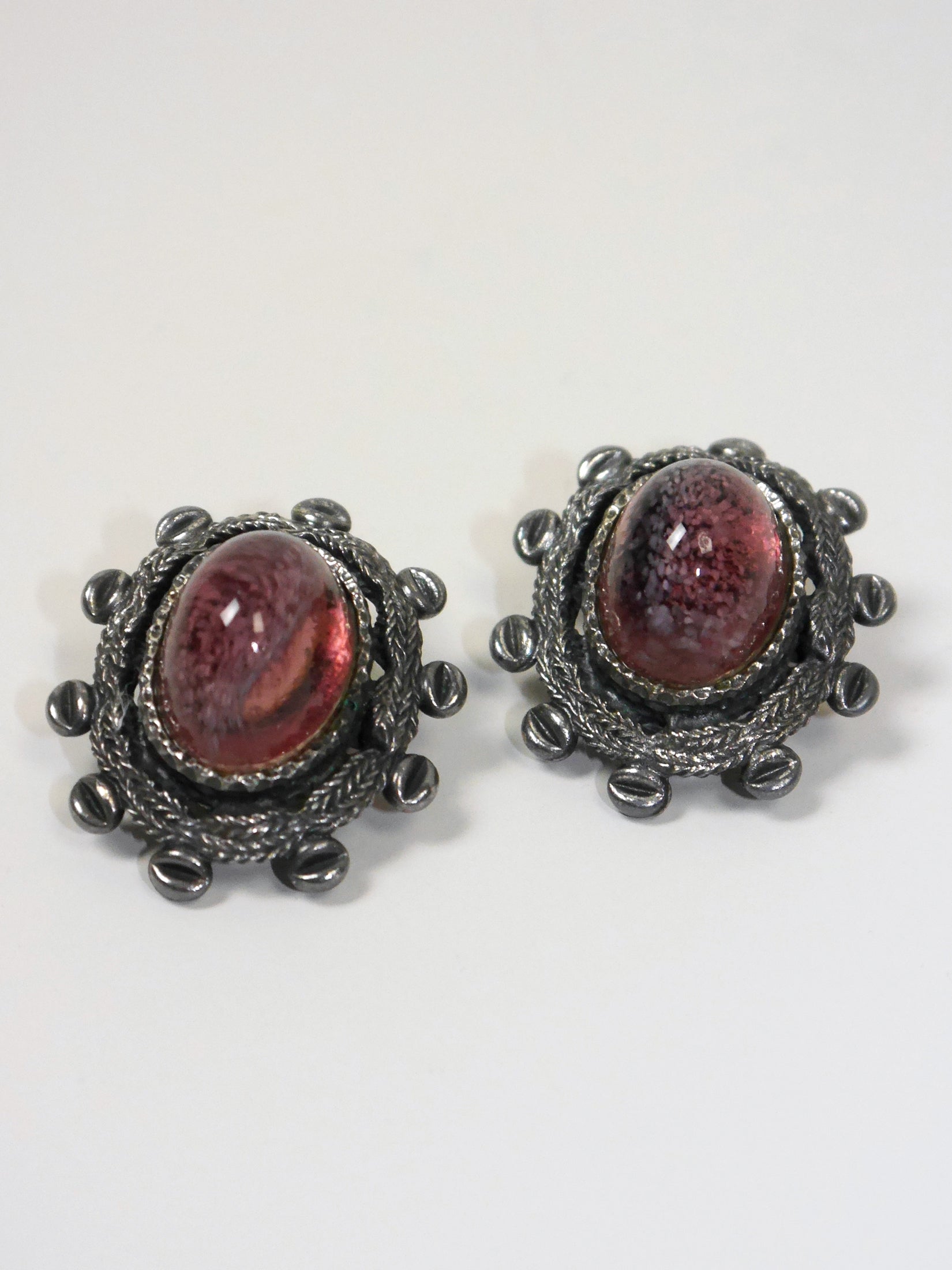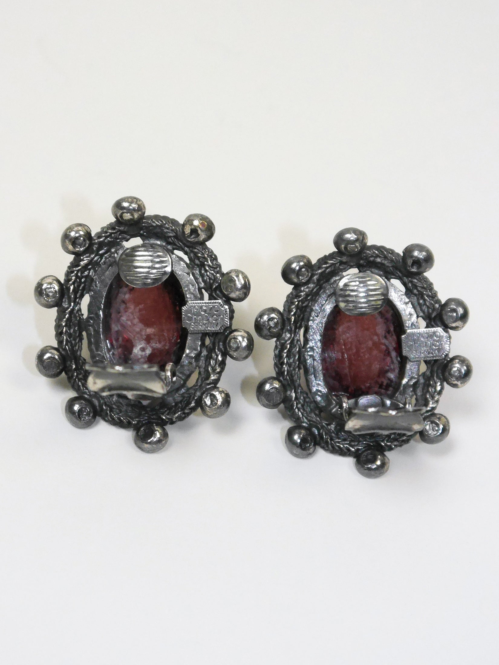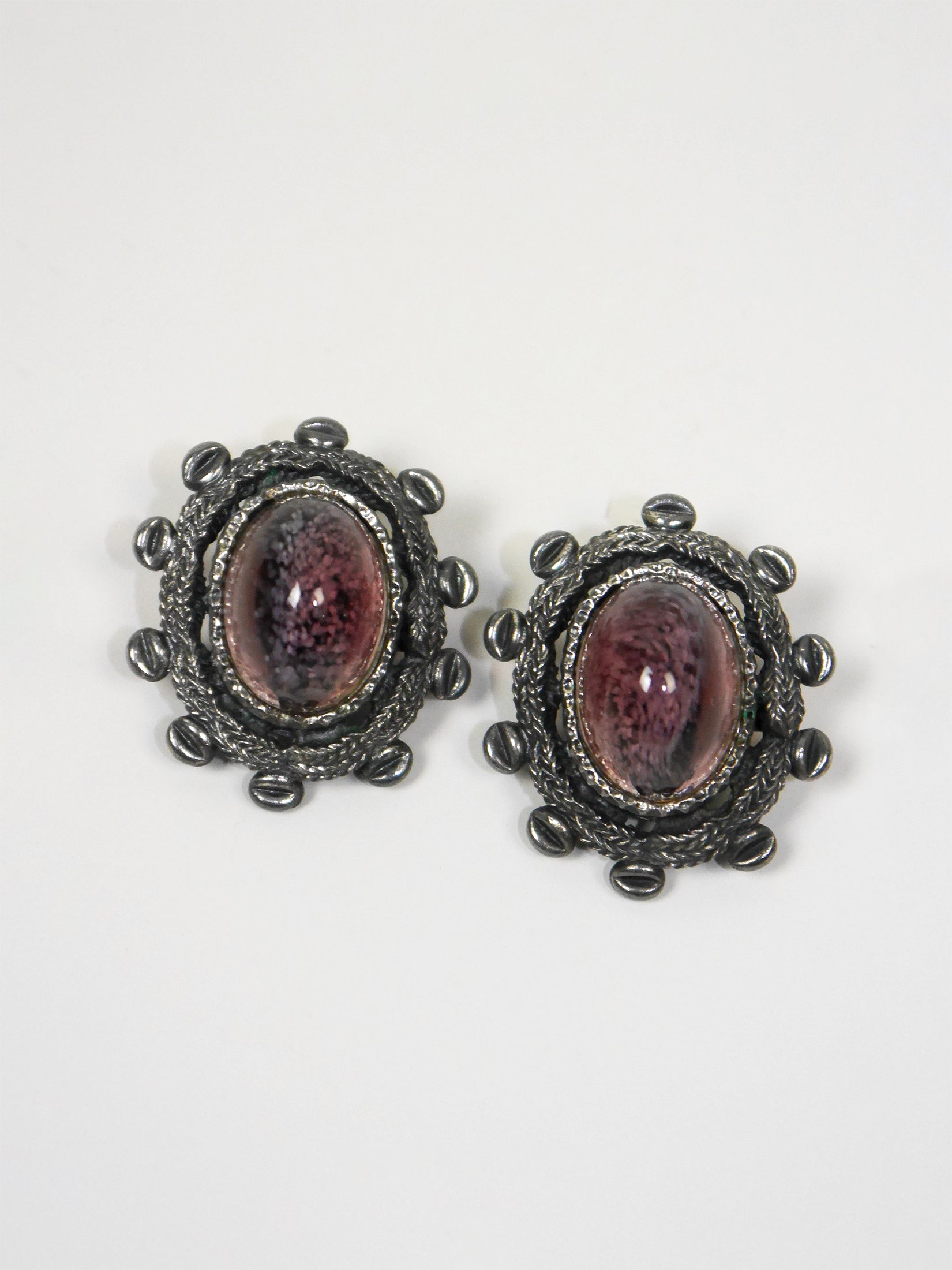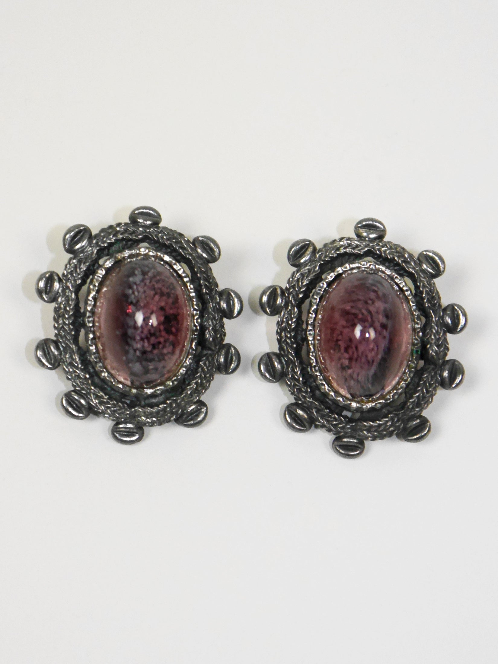 CHRISTIAN DIOR Germany 1970 Vintage Silver & Amethyst Colored Clip-On Earrings