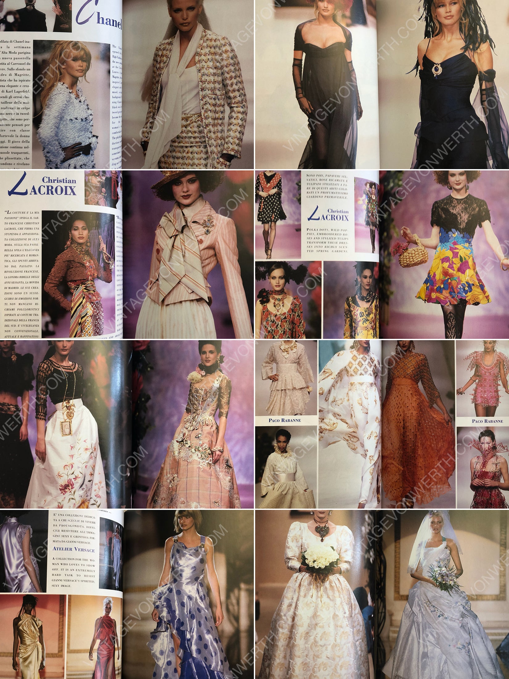 This incredibly rare Collezioni edition (No. 39) is fully dedicated to the Spring 1994 Haute Couture collections, featuring over 1,000 stunning color images from the Paris and Rome runways. Designers showcased include:
