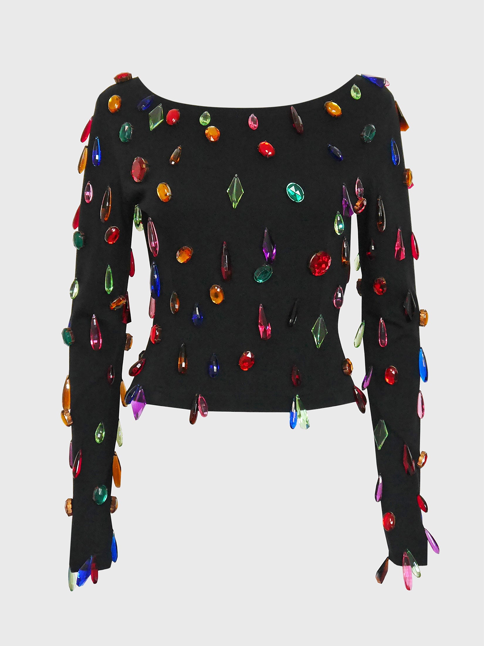 DOLCE & GABBANA c. Fall 1991 Vintage Rainbow Crystal Beaded Longsleeve Top