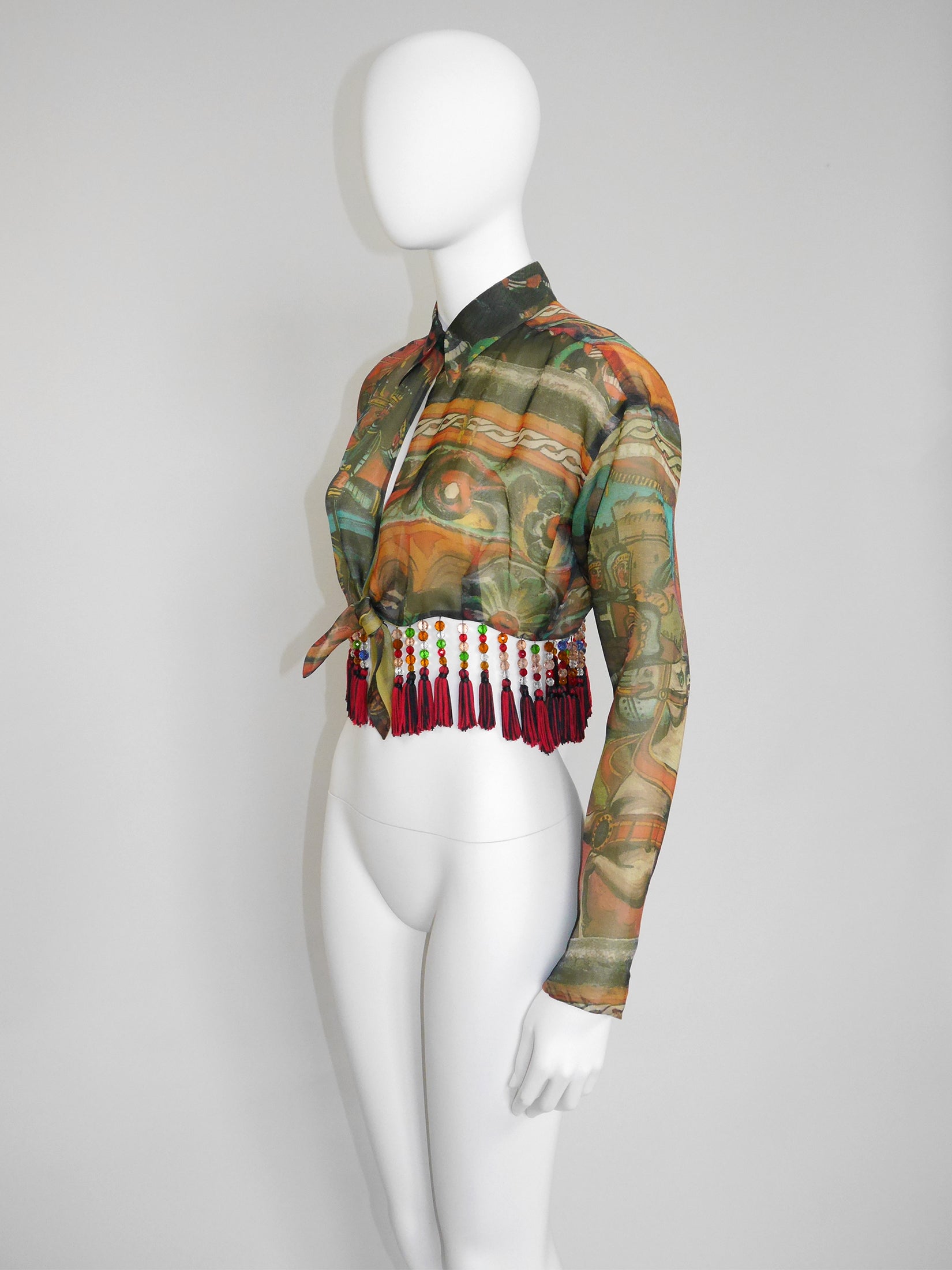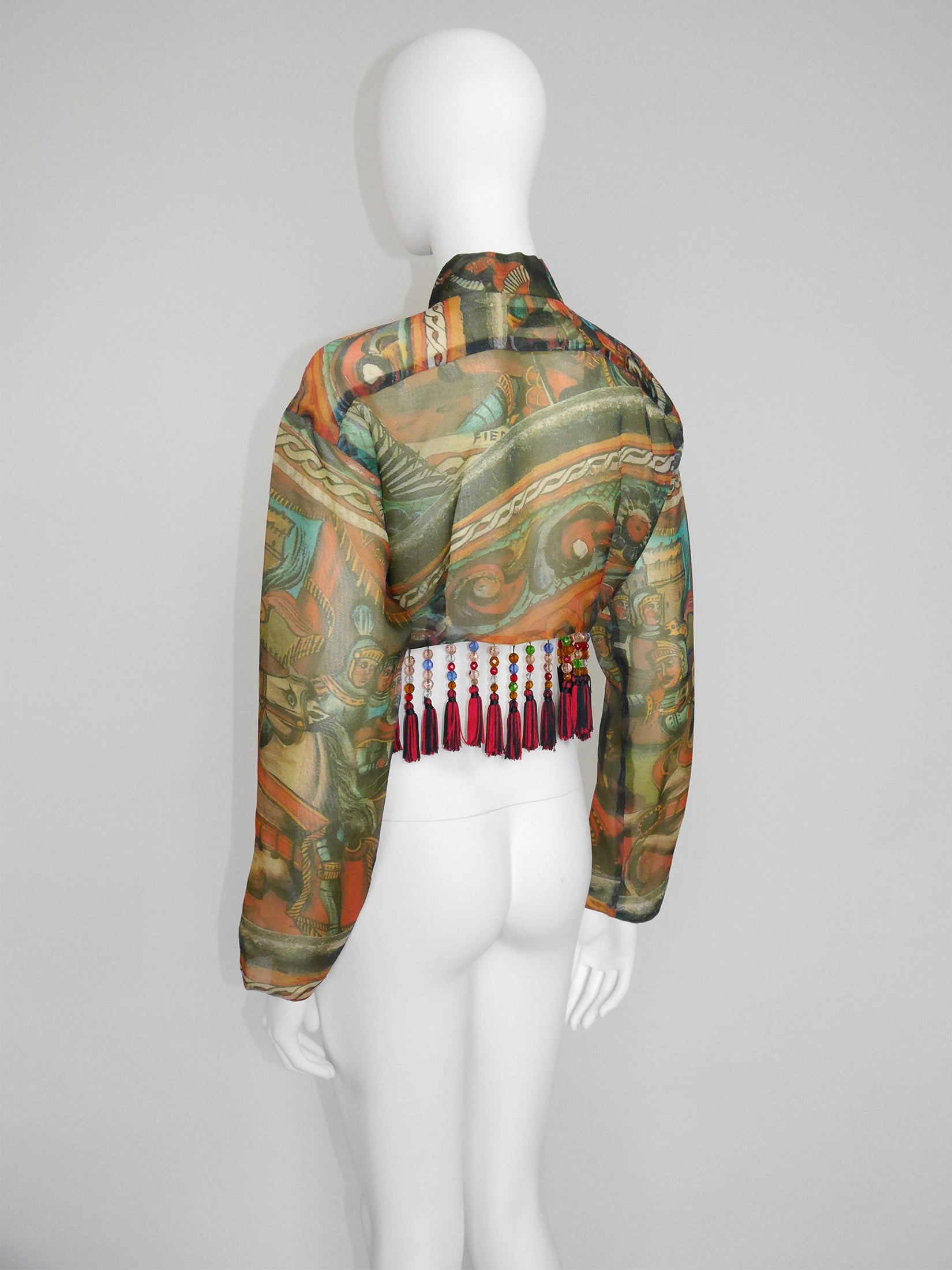 DOLCE & GABBANA Spring 1992 Vintage Cropped Silk Blouse w/ Beaded Tassels Size M
