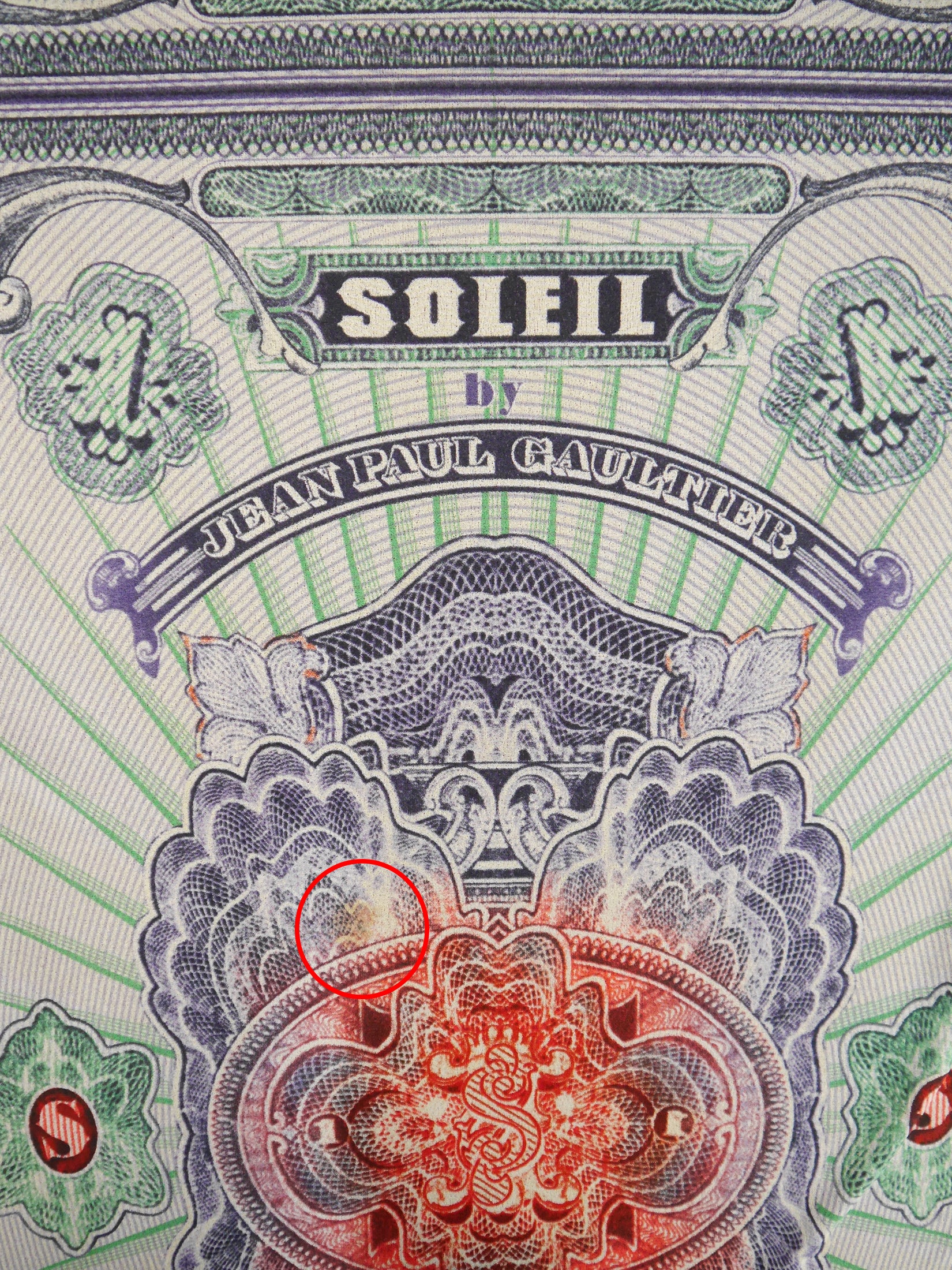 This rare and instantly recognizable vintage Jean Paul Gaultier maxi skirt from the 1990s is made from the typical fine mesh fabric and features the iconic money or bank note print with lots of intriguing details. Designed in a pareo style, the skirt wraps around the body and ties to close. It is constructed of two layers, with a slightly shorter bottom layer in solid dark red. 100% polyester. Made in Italy.