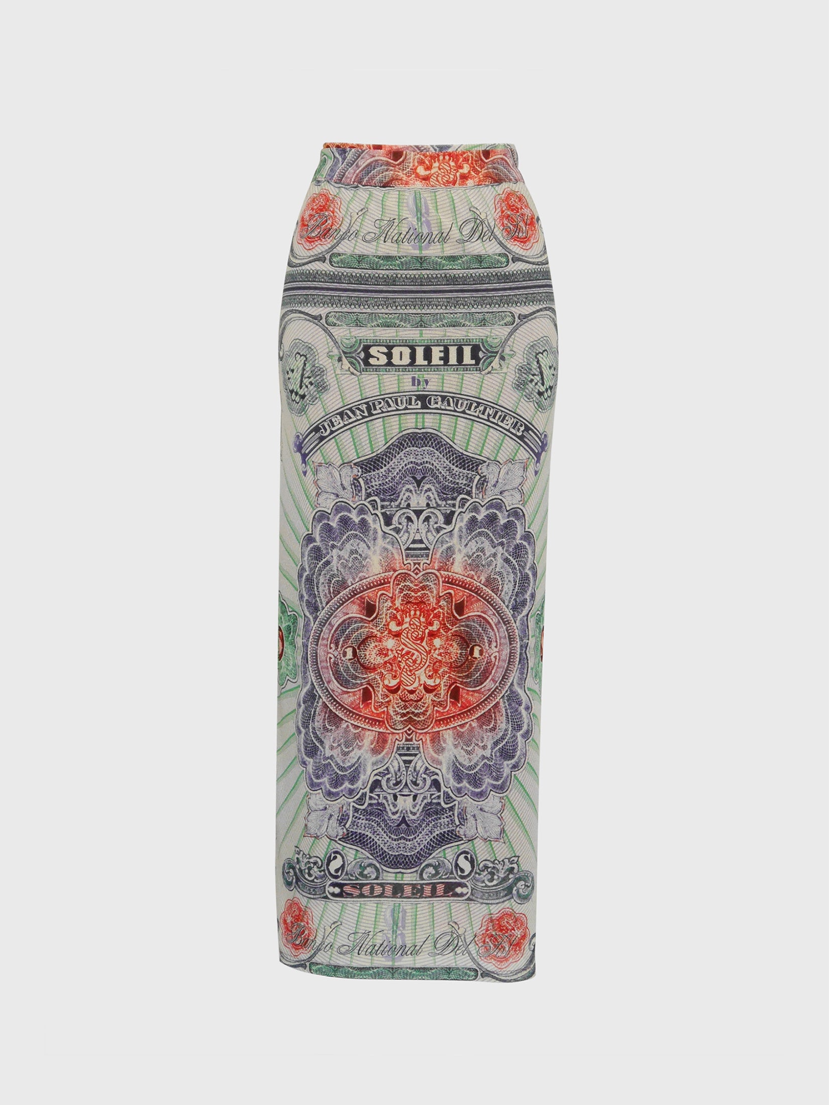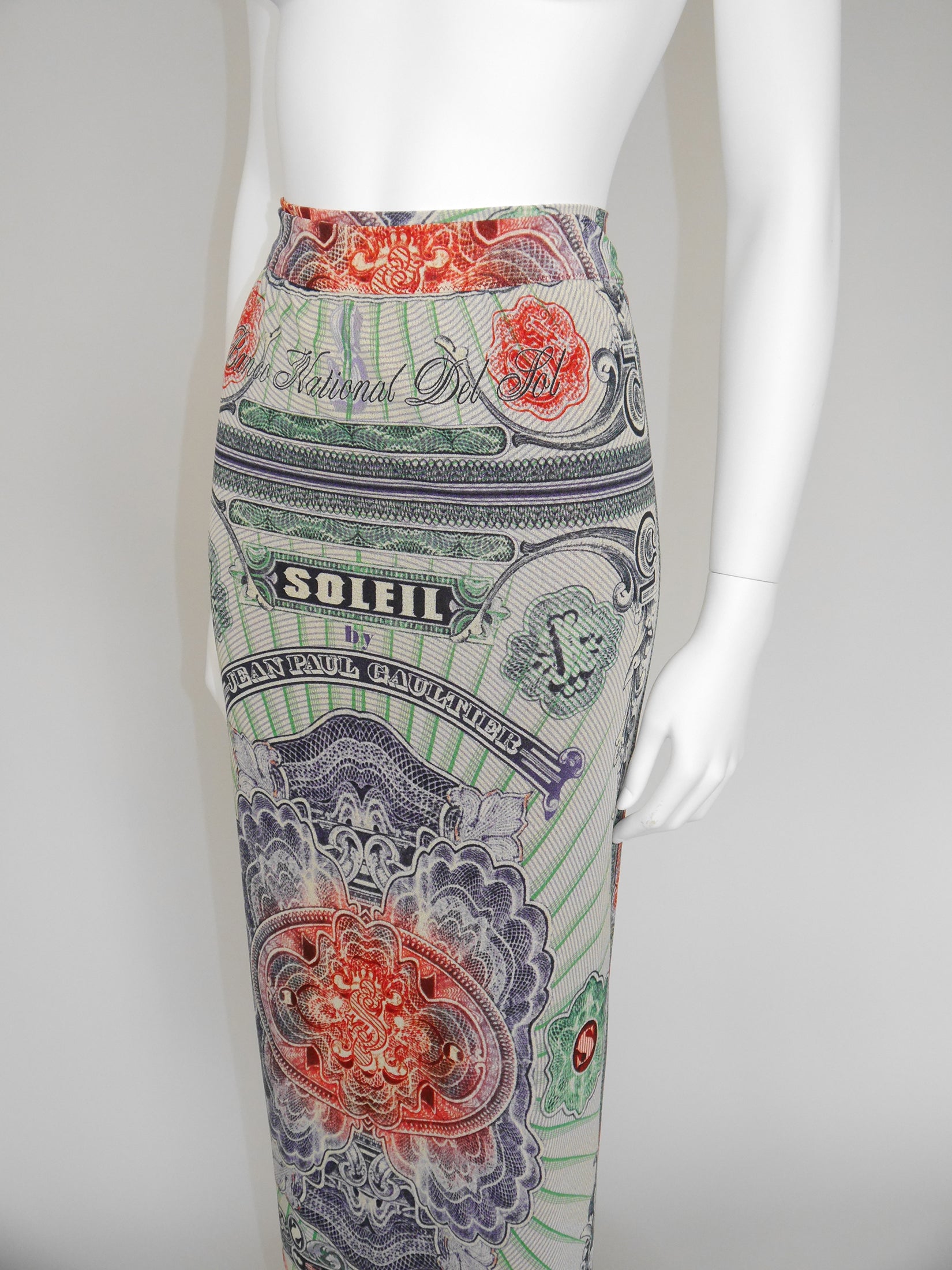 JEAN PAUL GAULTIER 1990s Vintage Money Bank Note Print Maxi Skirt Pareo Size XS-S