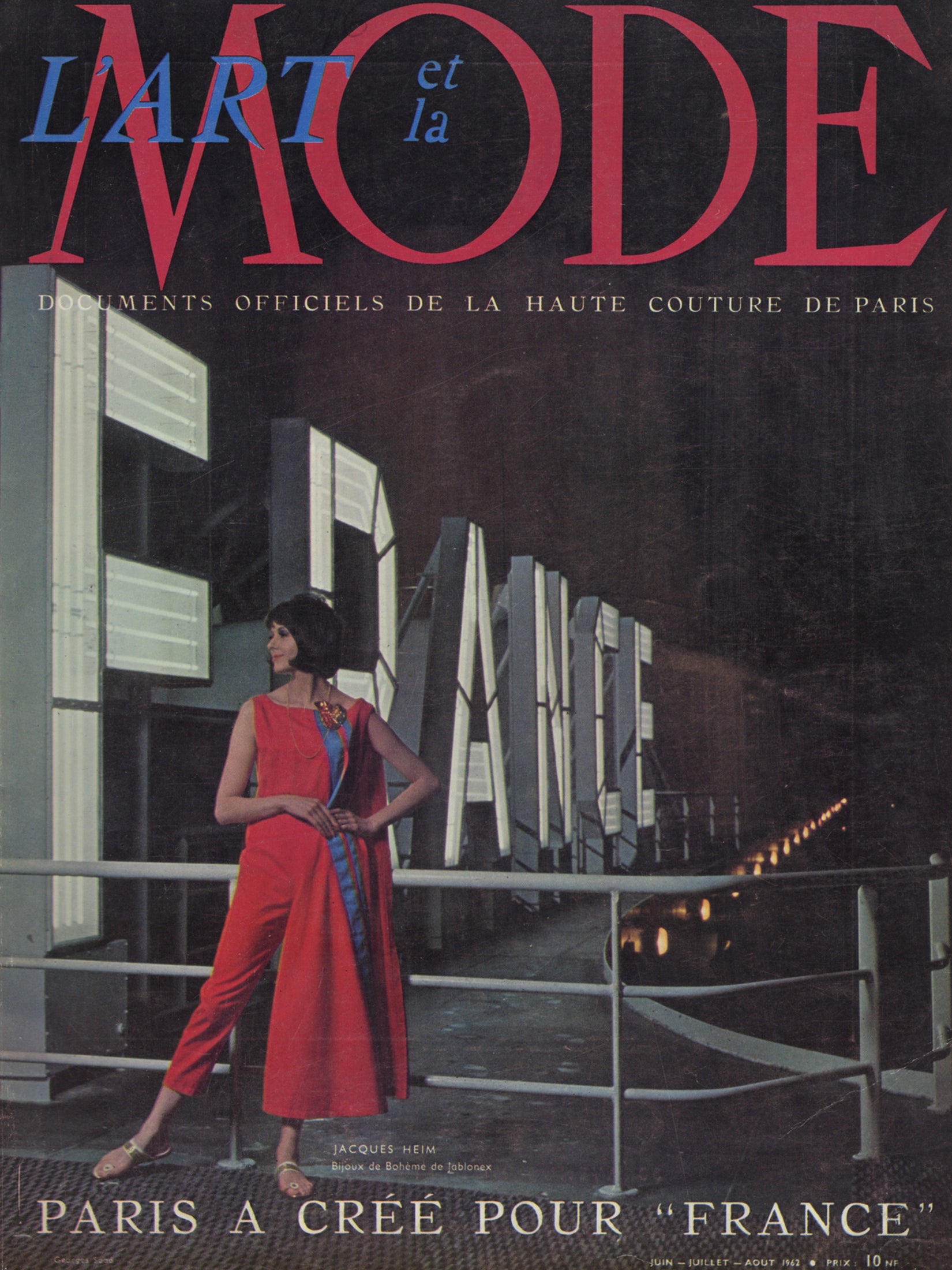 This incredibly rare June/July 1962 issue of L'Art et la Mode features stunningly beautiful advertisements and exceptional fashion photography by Georges Saad, showcasing the work of prestigious couturiers such as Nina Ricci, Maggy Rouff, Pierre Balmain, Pierre Cardin, Guy Laroche, Jacques Heim, Jean Dessès, Grès, Jean Patou, Lanvin-Castillo, Balenciaga, Yves Saint Laurent, and many more. The magazine perfectly captures the spirit of the early 1960s in its pages and is a highly sought after collector's item, featuring spectacular fashion imagery.