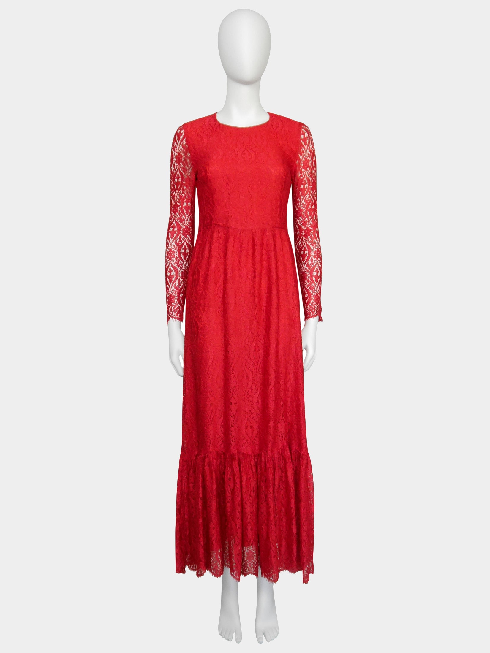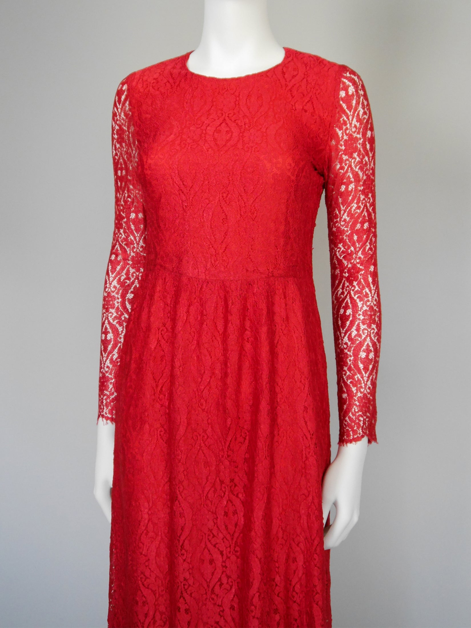 MISS DIOR by Christian Dior c. 1970 Vintage Red Lace Maxi Evening Gown Size S