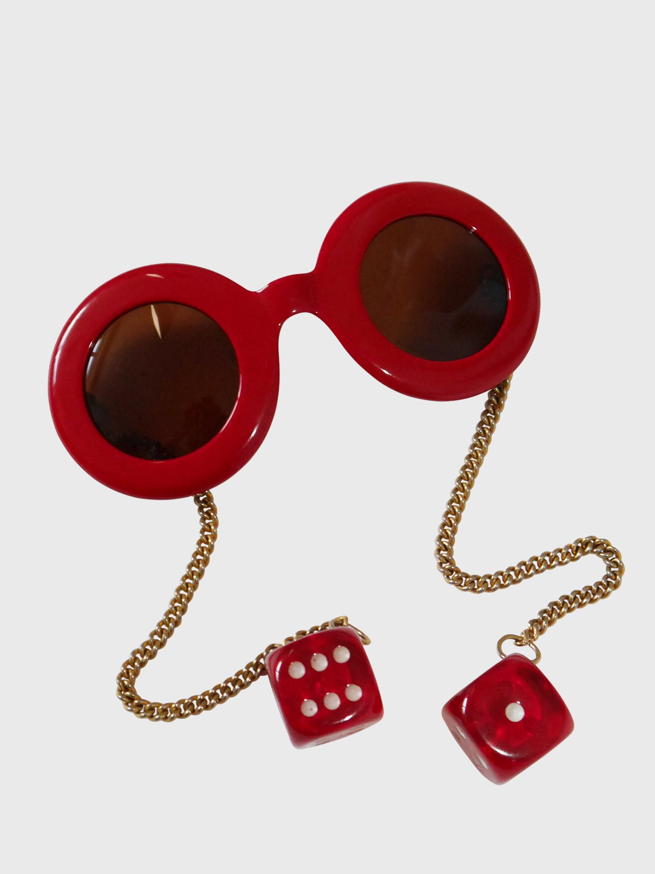 PATRICK KELLY 1980s Vintage Round Sunglasses w/ Chain Temples & Dice Pendants