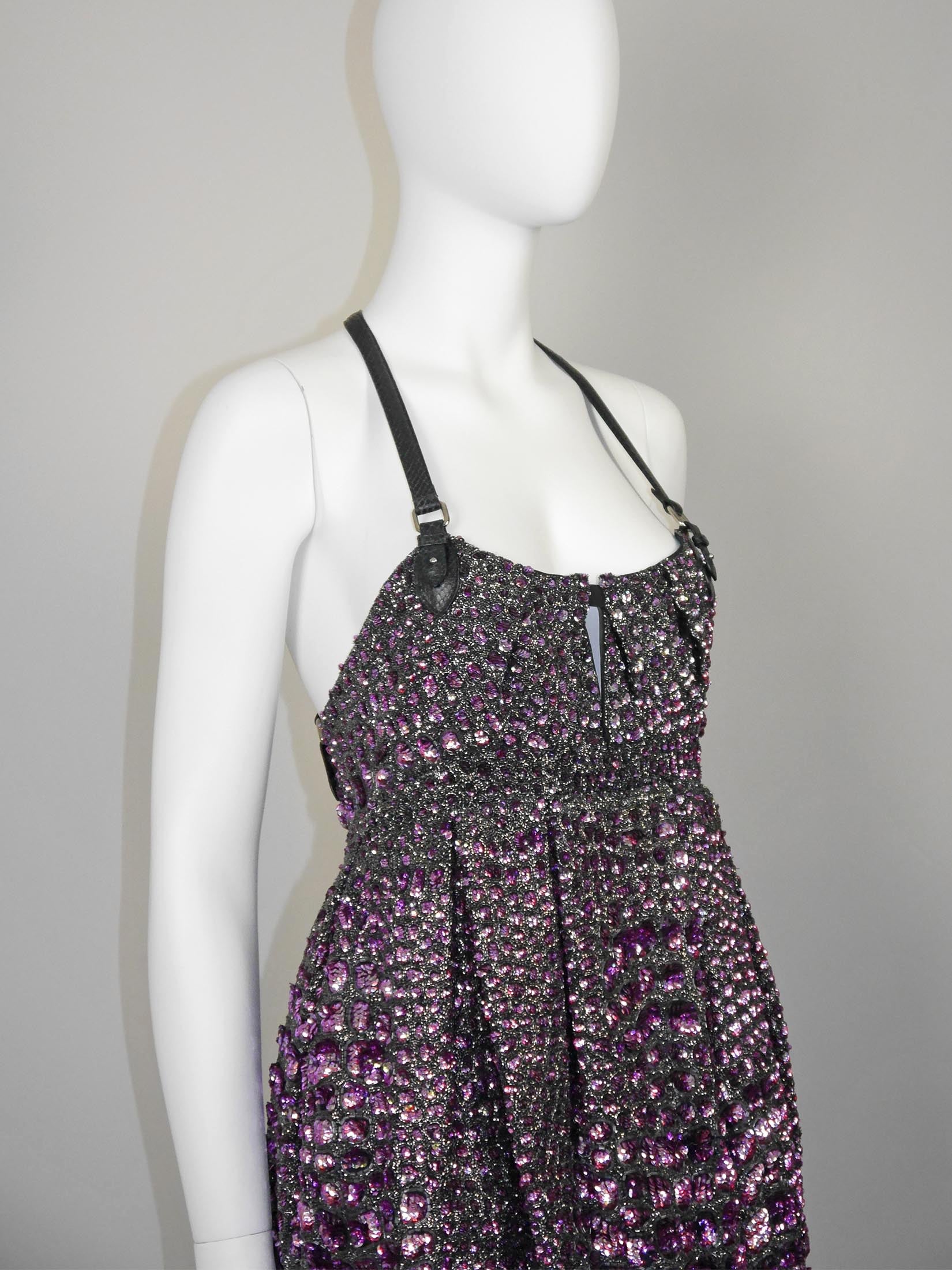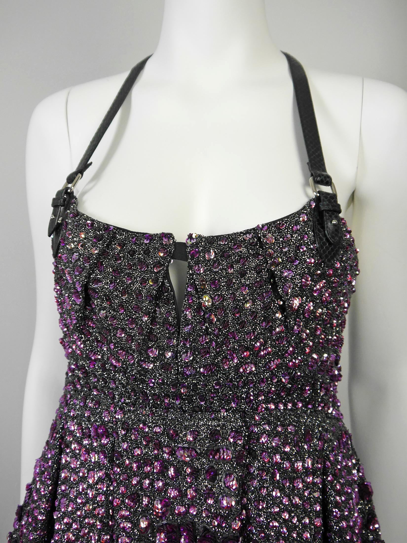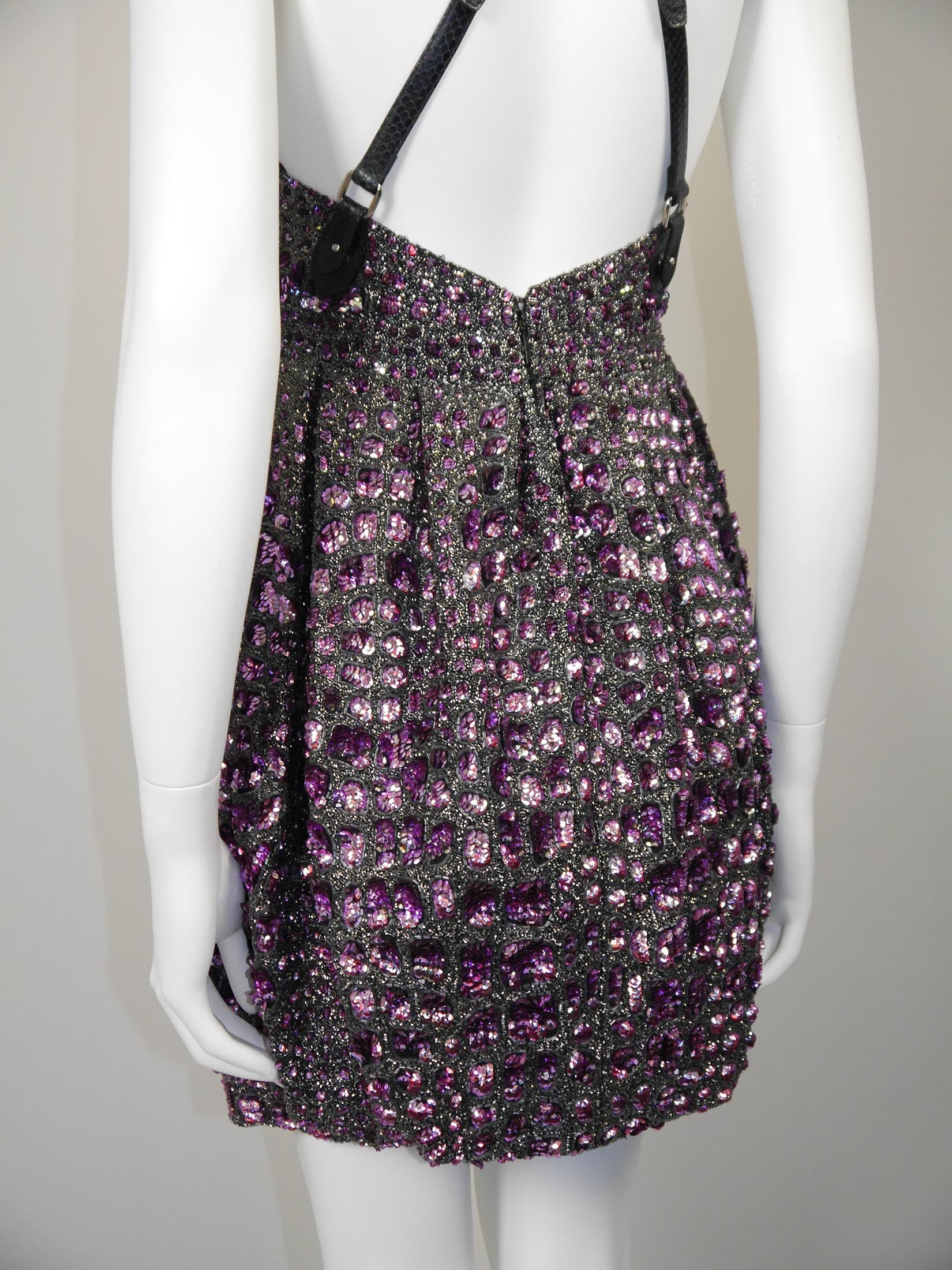 ROBERTO CAVALLI Fall 2012 Vintage Fully Beaded Harness Mini Dress Size XS