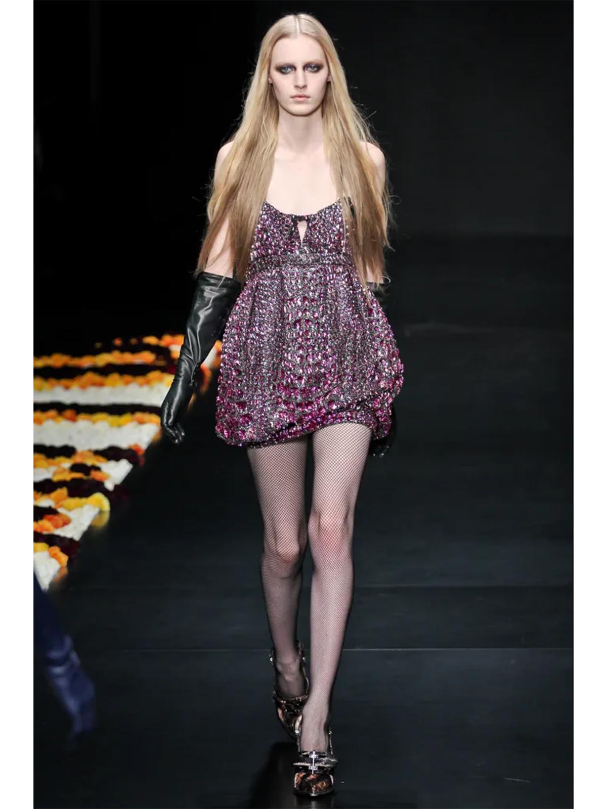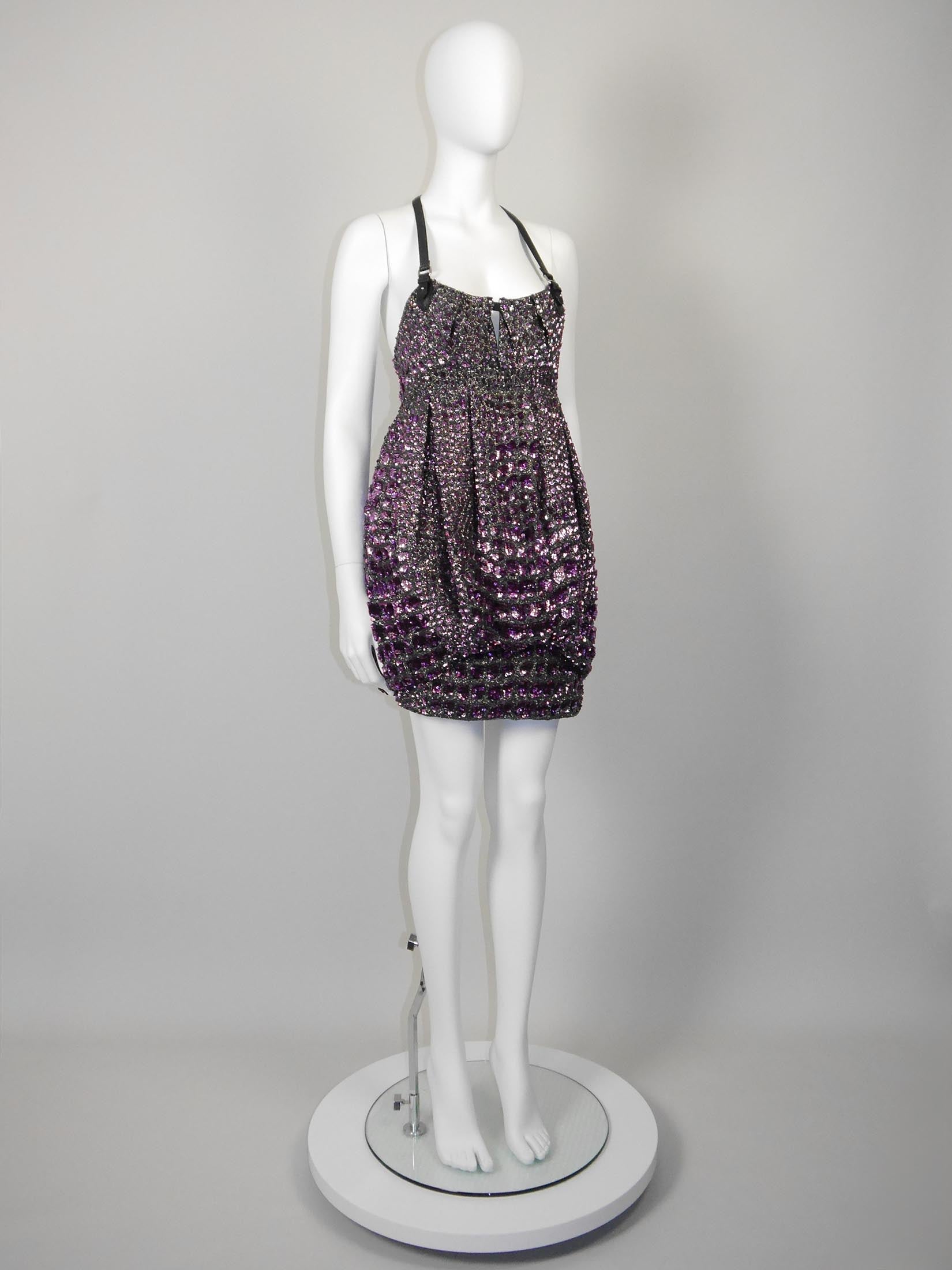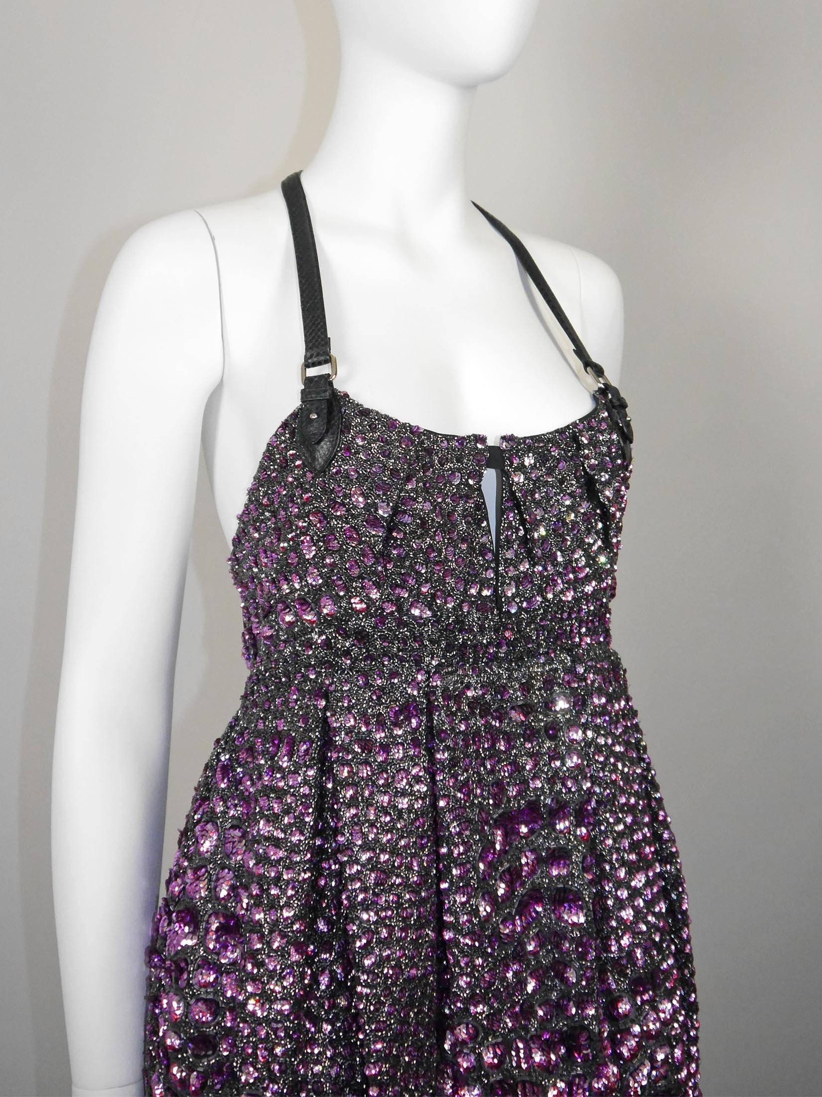 ROBERTO CAVALLI Fall 2012 Vintage Fully Beaded Harness Mini Dress Size XS