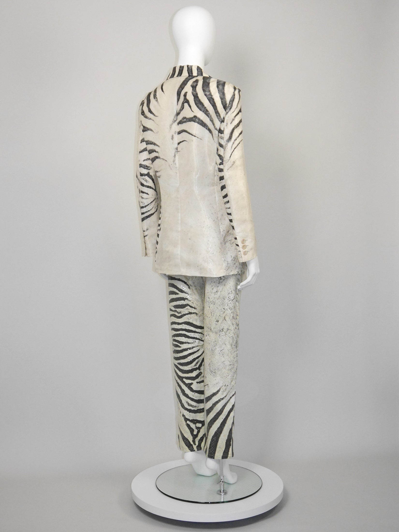 ROBERTO CAVALLI Spring 1999 Vintage Zebra Print Silk Jacket & Denim Pants Suit Size M