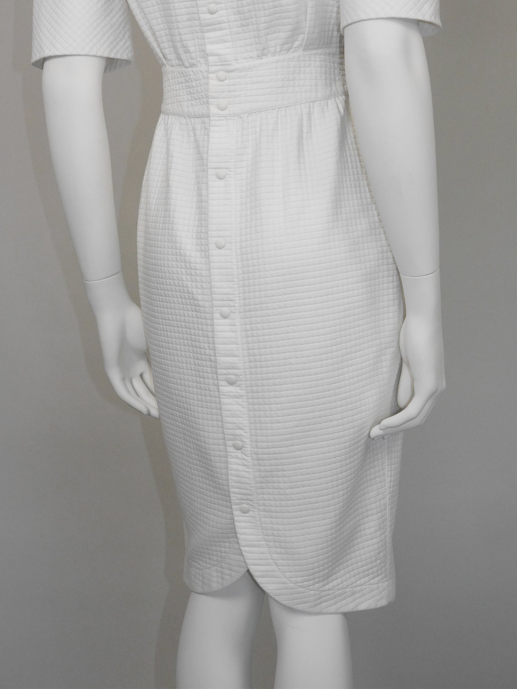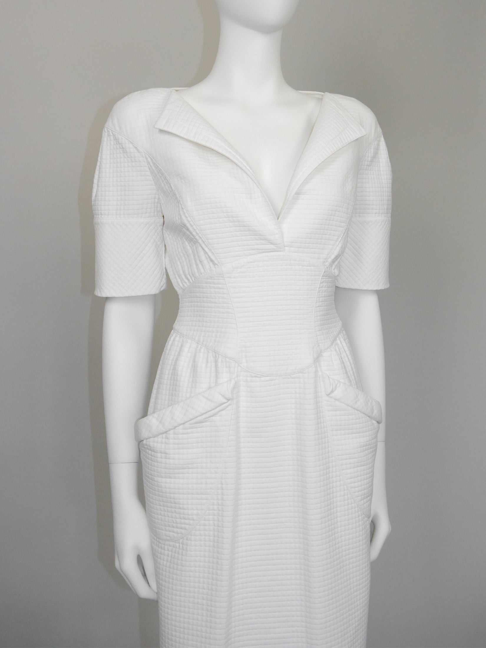 THIERRY MUGLER 1980s 1990s Vintage White Waffle Weave Sculpted Dress Size XS
