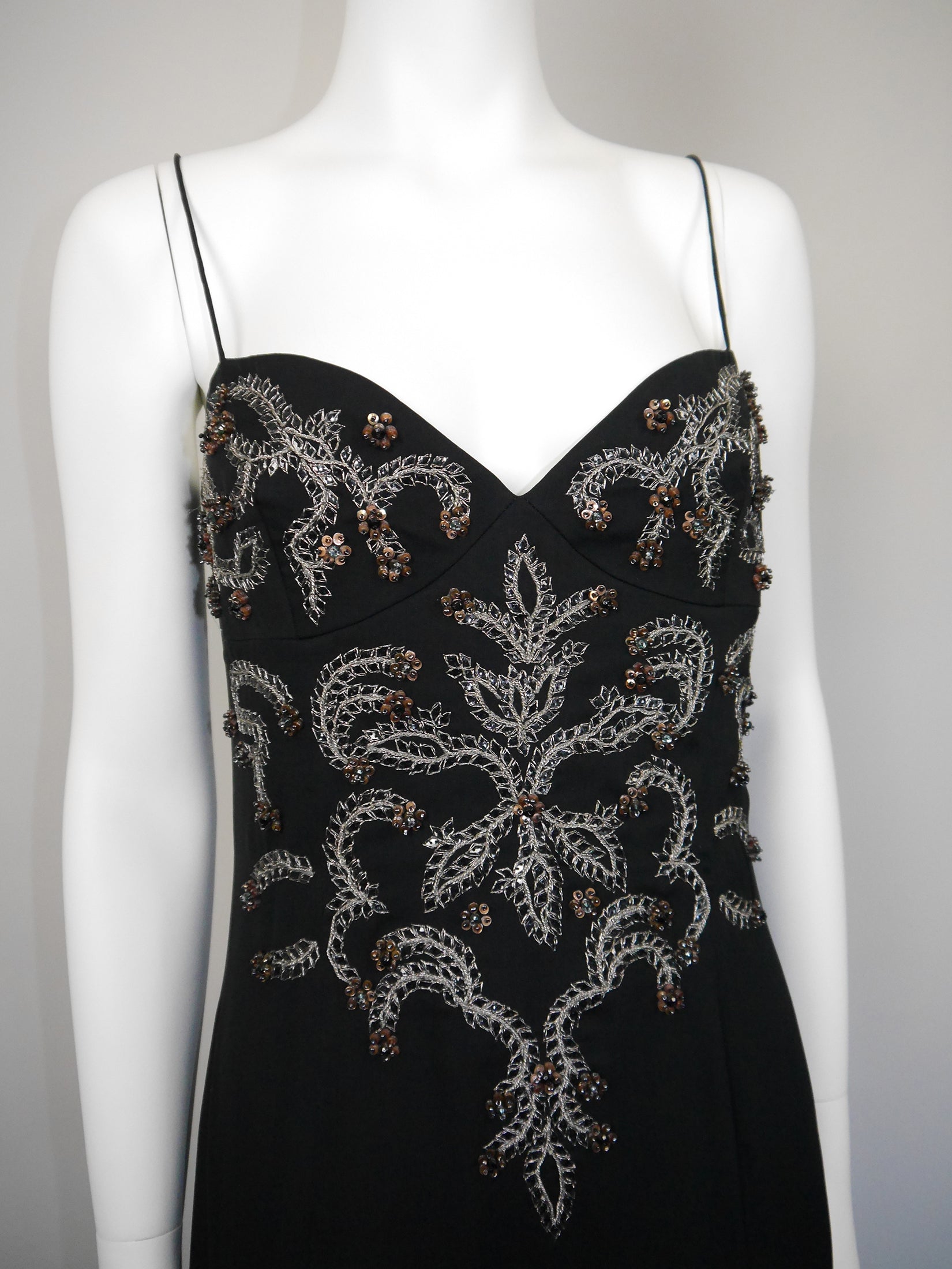 VALENTINO 1990s 2000s Vintage Black Beaded Sequined Maxi Evening Dress Gown Size M-L
