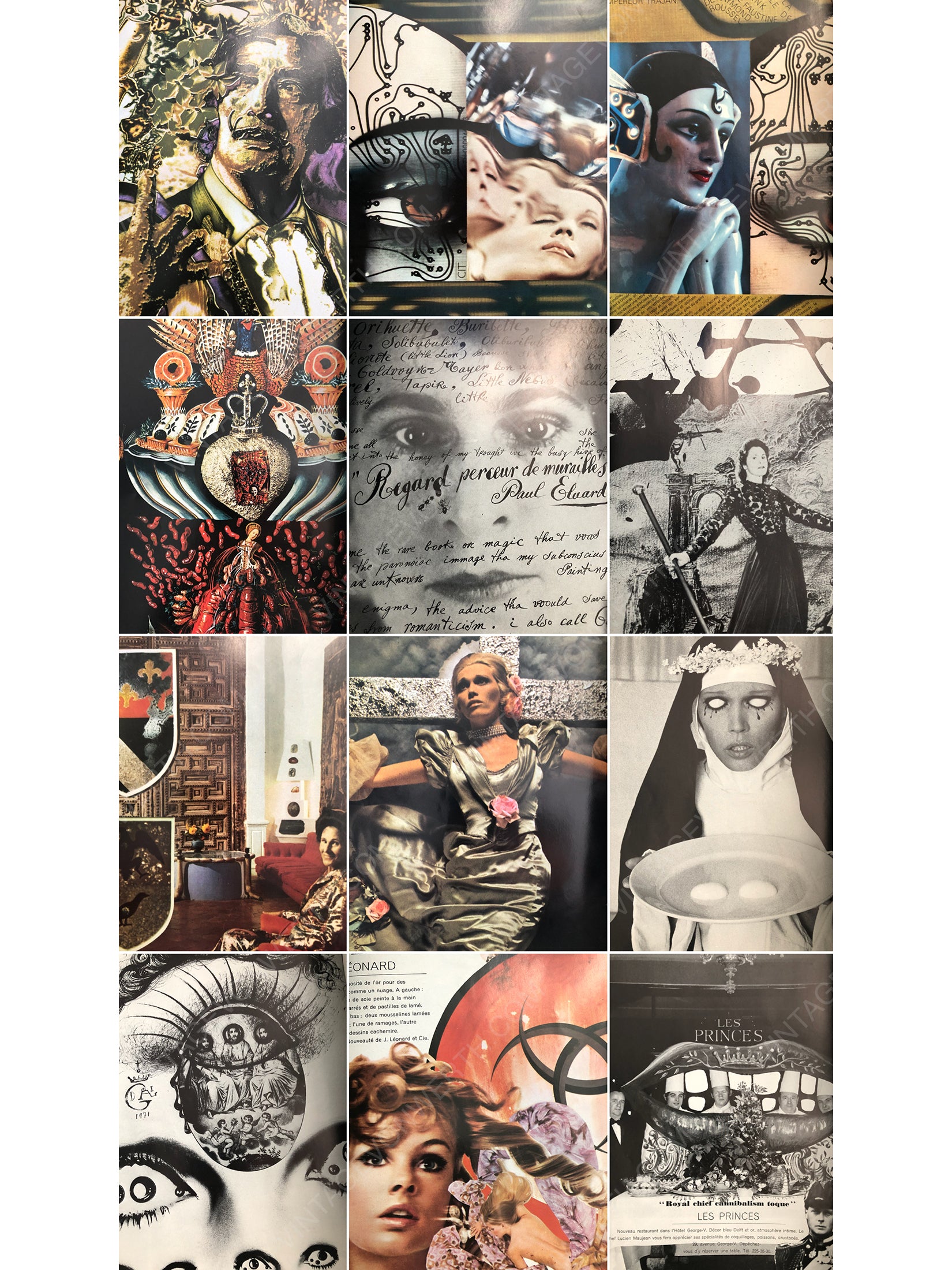 This rare and exceptional December 1971/January 1972 issue of Vogue Paris is the third Christmas and New Year guest-edited issue for which Vogue Paris became famous in the 1970s and 1980s. The guest editor of this issue is the celebrated artist Salvador Dalí. It features stunningly beautiful ads (Miss Dior by René Gruau, Bulgari, Cartier, Chanel and many more - many of the ads are dedicated to Salvador Dalí and are in a surrealist style) and outstanding photography by Robert Descharnes, Marc Lacroix, Draeger, Marc Riboud, Alex Chatelain, David Bailey, Henry Clarke and others. Models include Veruschka and Jean Shrimpton. The magazine perfectly captures the spirit of the early 1970s in its pages and is a sought-after collector's item with spectacular imagery.