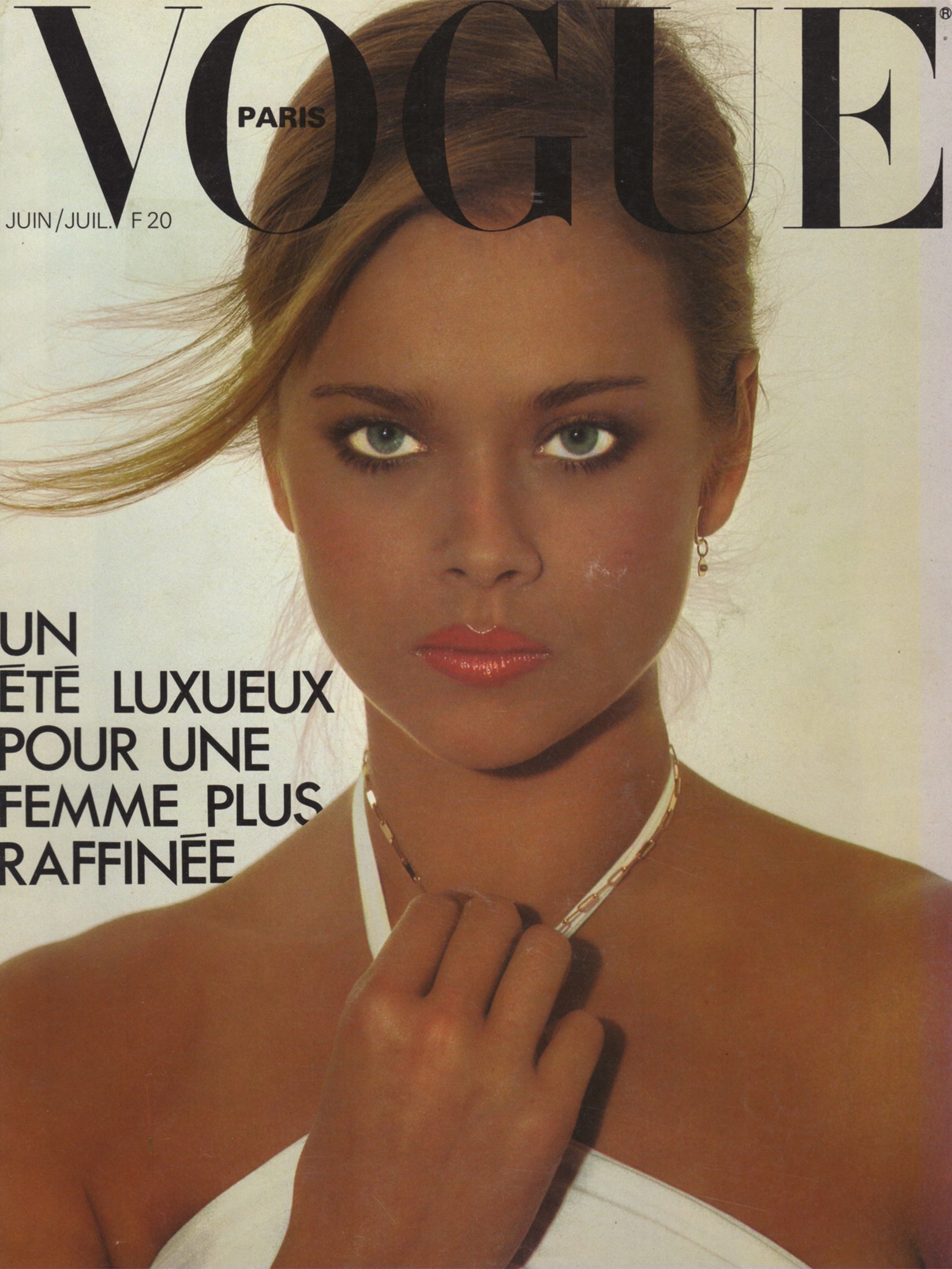 This incredibly rare June/July 1977 issue of Vogue Paris features stunningly beautiful advertisements and exceptional fashion photography by David Bailey (6 pages), Guy Bourdin (4 pages jewelry), Helmut Newton (4 sexy pages with Raquel Welch), David Hamilton (4 pages), Alfa Castaldi (6 pages), Paul Wagner (6 pages), Norman Parkinson (4 pages), Daniel Jouanneau (4 pages), and Snowdon, showcasing the work of prestigious couturiers. 4-page spotlight on Pierre Cardin's "Prêt-à-Couture" with photos by Tony Kent.
