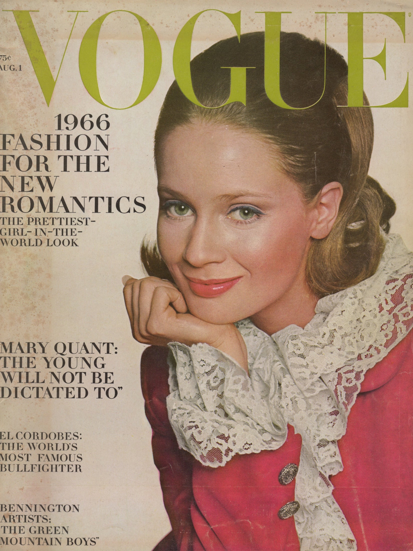 This rare US Vogue from August 1, 1966 features stunning advertisements and iconic fashion and lifestyle photography by Richard Avedon (14 pages with Lauren Hutton and Marisa Berenson, among others), Bert Stern (2 pages with Barbara Feldon), Norman Parkinson (8 pages with Vanessa Redgrave, 5 pages with Jane Birkin, 2 pages with Romina Power, and much more), and Irving Penn (8 pages with Birgitta af Klercker and Editha Dussler), among others. 2 pages on Ursula Andress, with photos by Hatami.
