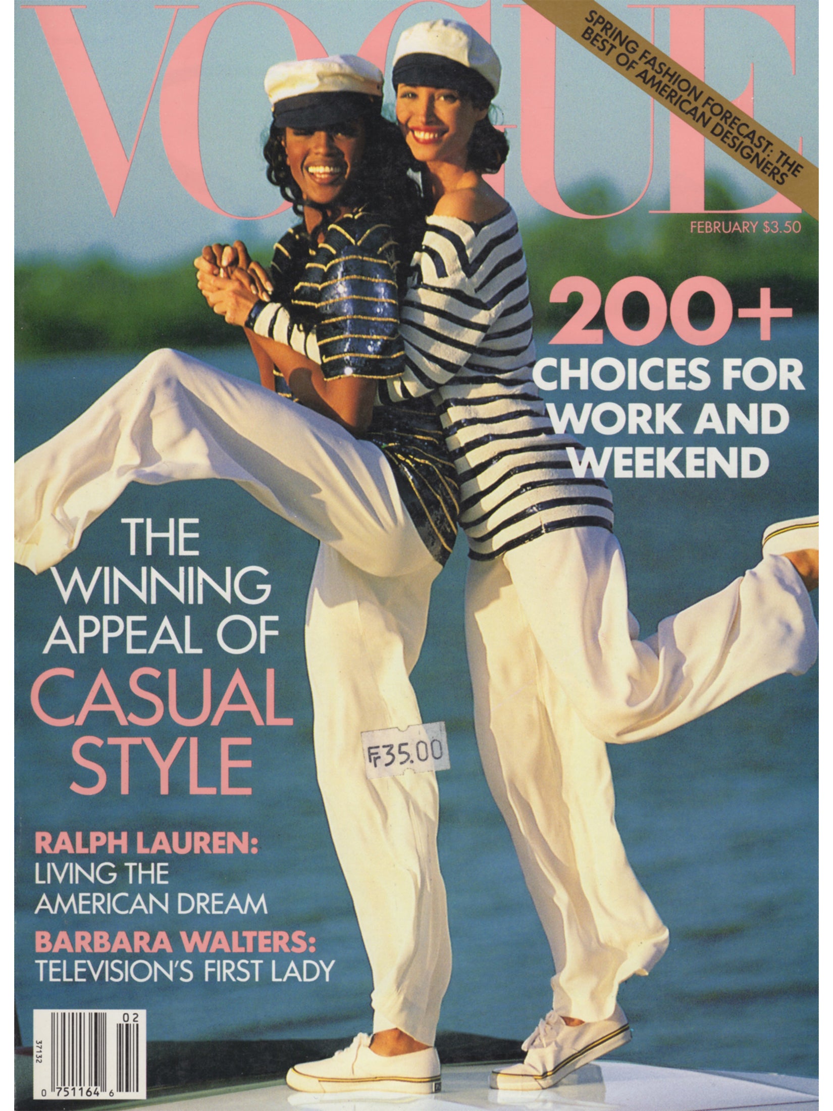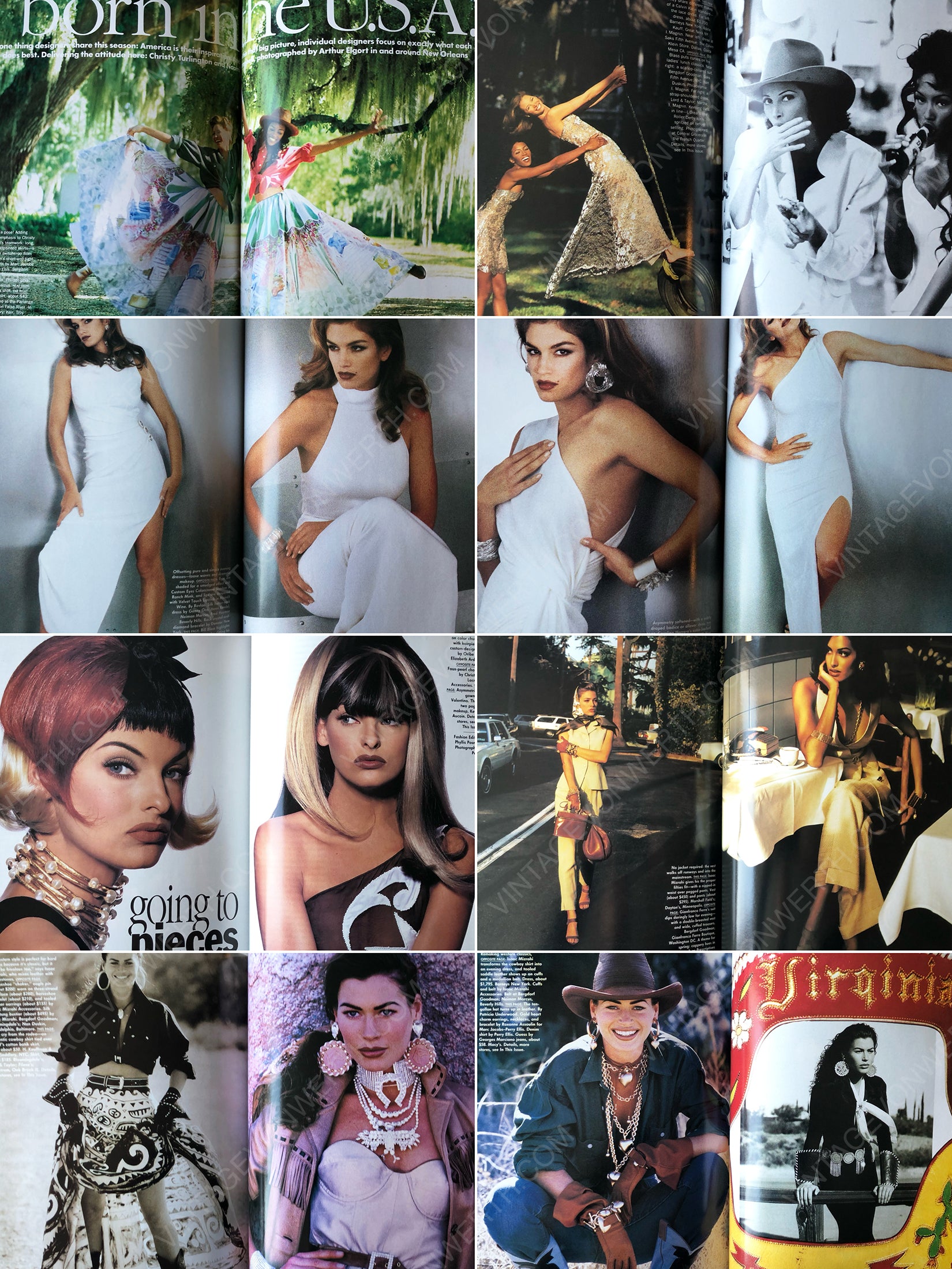 This rare and exceptional February 1992 issue of Vogue US is a treasure trove of high fashion and lifestyle, bursting with stunning shots of all the original supermodels. It features an amazing Naomi Campbell and Christy Turlington cover, stunning advertisements from iconic brands (Salvatore Ferragamo with Claudia Schiffer, Escada with Yasmeen Ghauri, Dolce & Gabbana with Monica Bellucci and Isabella Rossellini, Guess with Eva Herzigova, Gianfranco Ferré with Linda Evangelista, Sonia Rykiel with Helena Christensen, Gucci with Gail Elliott, and many more), along with superb fashion and lifestyle photography by acclaimed artists, including Arthur Elgort (16 pages with Naomi Campbell and Christy Turlington, styled by Grace Coddington), Sheila Metzner (6 pages with Cindy Crawford), Irving Penn (2 pages with Linda Evangelista), Patrick Demarchelier (8 pages with Carré Otis, styled by Carlyne Cerf de Dudzeele), Tiziano Magni (8 pages with Elaine Irwin and Yasmeen Ghauri), and others.