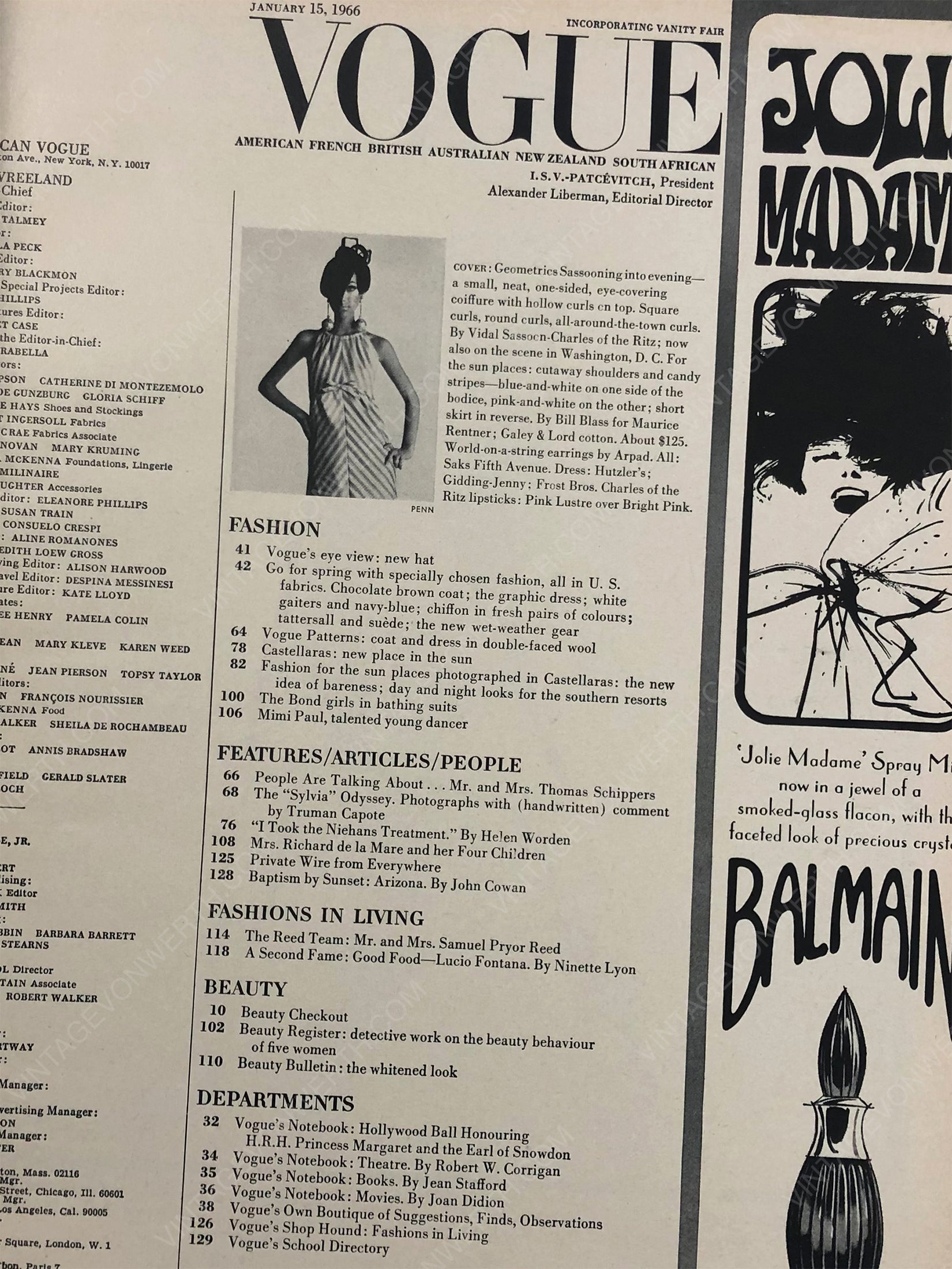 An amazing January issue with a beautiful Marisa Berenson cover and iconic fashion and lifestyle photography by Bert Stern, Horst P. Horst, Henry Clarke, Gianni Penati, Cecil Beaton, Irving Penn and more. Models include Marisa Berenson, Veruschka, Birgitta af Klercker, and Wilhelmina Cooper. 2 pages on Lucio Fontana (photo by Ugo Mulas).