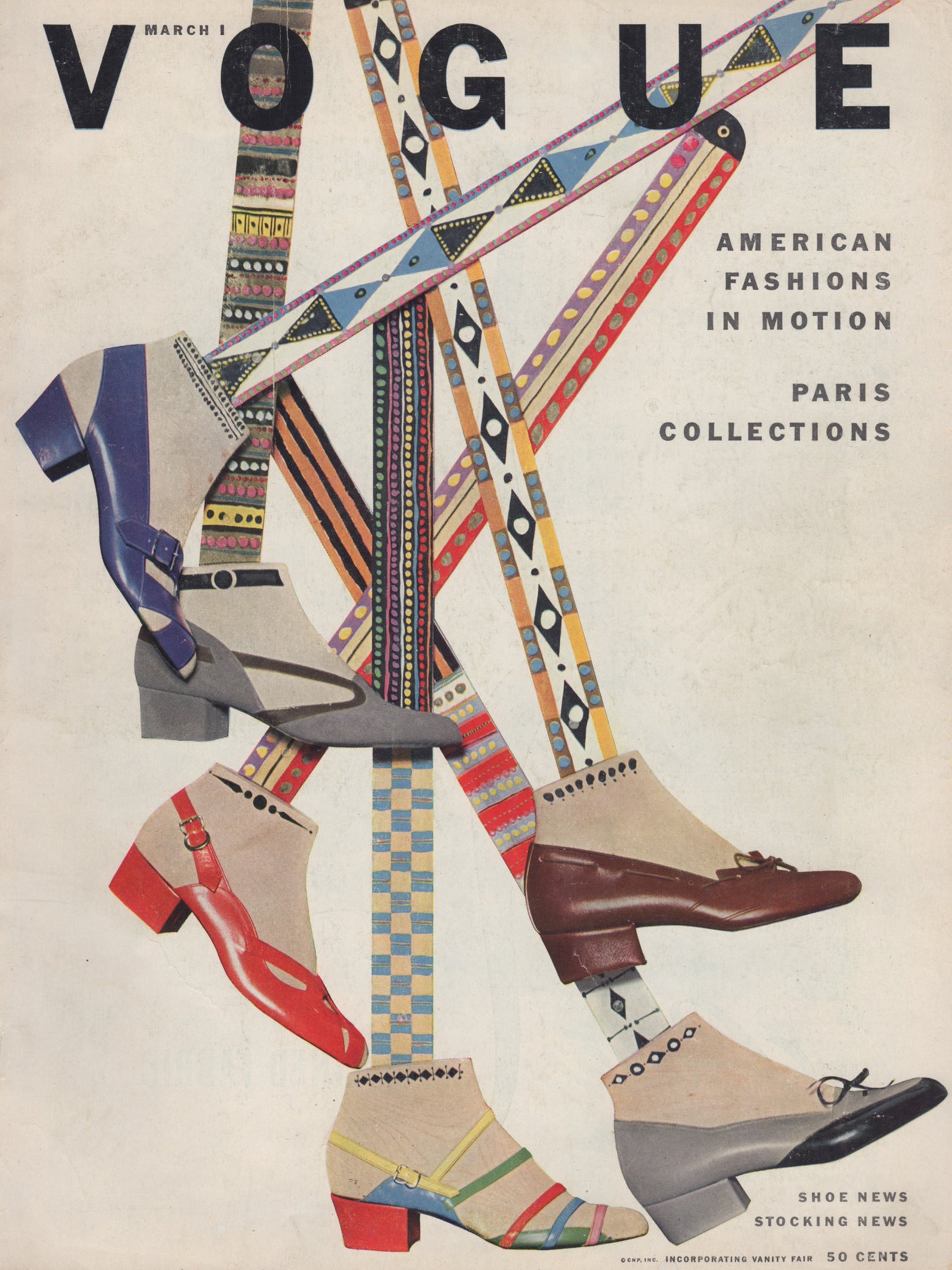 This vintage Vogue magazine is in excellent vintage condition, featuring a clean cover and well-preserved interior pages. Damaged spine, especially at the top and bottom. Otherwise only minimal age-related wear.