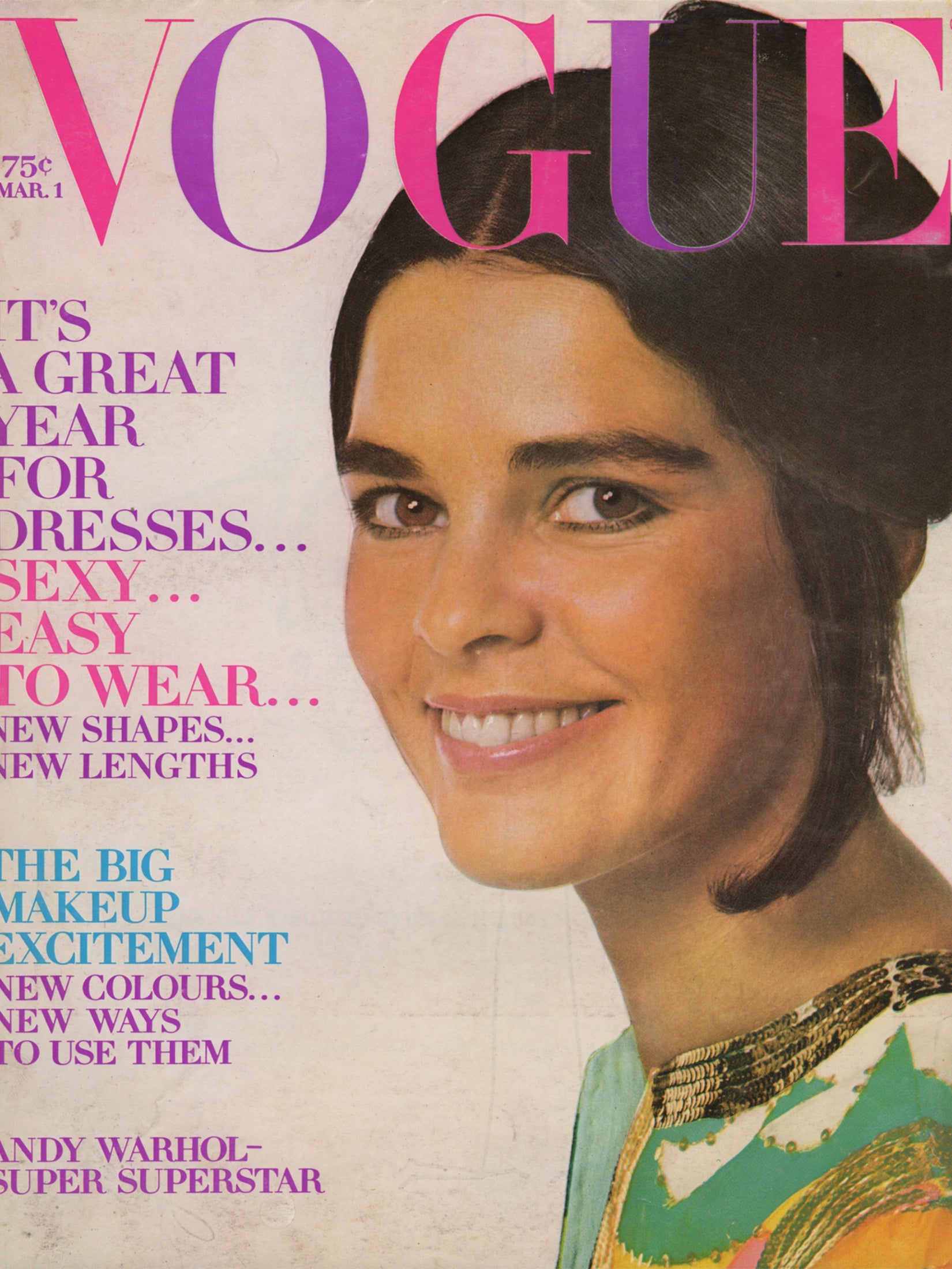 A spectacular March issue with an iconic Ali MacGraw cover, a strong advertisement section and fashion and lifestyle photography by Bert Stern, Arnaud de Rosnay, Patrick Lichfield, Gianni Penati, John Cowan, Norman Parkinson, Horst P. Horst and more. This number showcases the Spring collections (Halston, Bill Blass, Scaasi, Oscar de la Renta and many more) modeled by Betty Catroux (wearing Yves Saint Laurent), Marisa Berenson, Charly Stember, Ann Turkel, Betsy Theodoracopulos, Claudine Auger, Leigh Taylor-Young, Marta Heflin, Lynne Sutherland and Lauren Hutton, among others. Truly iconic early 1970s fashion and beauty photography. 5 pages on Andy Warhol, including an interview with the artist.