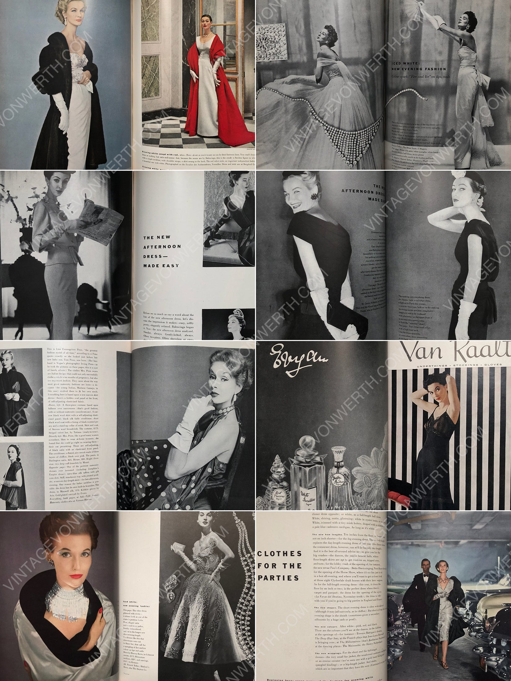 This rare US Vogue from November 1, 1952 features stunning fashion and beauty advertisements, striking illustrations, and iconic fashion and lifestyle photography by John Rawlings, Frances McLaughlin, Roger Prigent, Norman Parkinson, Irving Penn (2 pages with Lisa Fonssagrives-Penn), Clifford Coffin, and Horst P. Horst, showcasing beautiful models, illustrious society figures, and the work of prestigious couturiers.