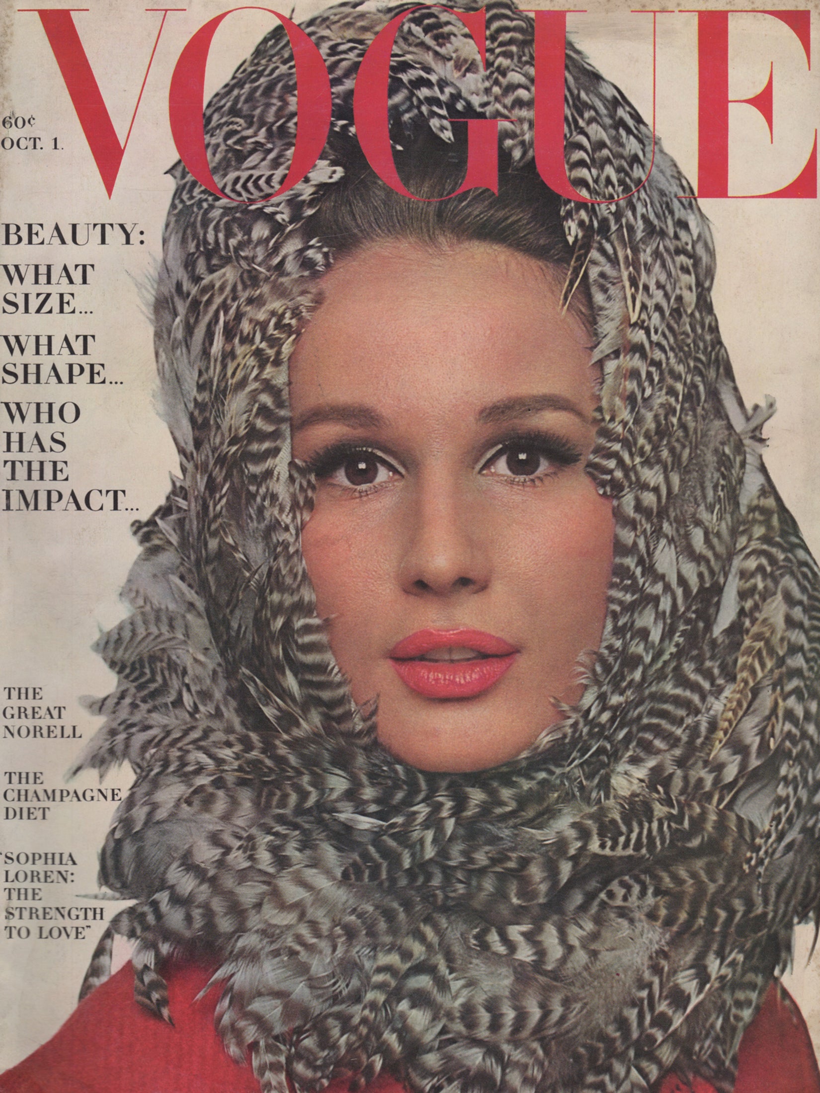 This rare US Vogue from October 1, 1963 features stunning fashion and beauty advertisements as well as iconic fashion and lifestyle photography by Horst P. Horst, Bert Stern (6 pages Norell), Leombruno-Bodi, Irving Penn, Helmut Newton, and Karen Radkai. Among the models in this issue are Jean Shrimpton, Veruschka, and Brigitte Bauer. 4-page spotlight on Sophia Loren, with photos by Bert Stern and Paolo Costa.