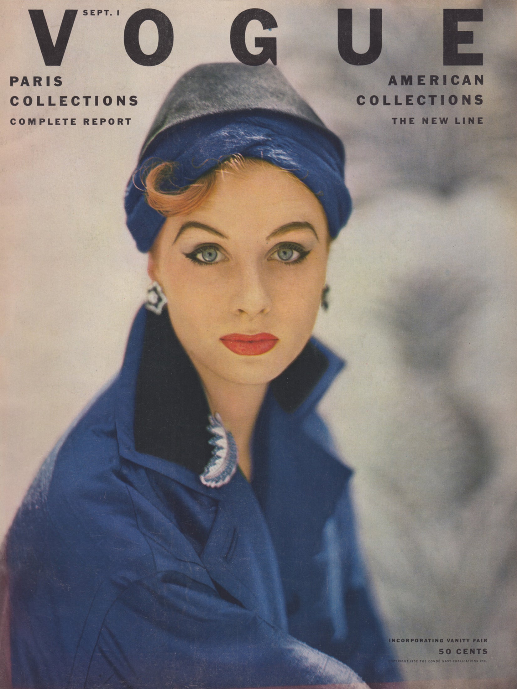 This rare US Vogue from September 1, 1952 features stunning fashion and beauty advertisements, striking illustrations, and iconic fashion and lifestyle photography by Frances McLaughlin, Irving Penn, Roger Prigent, Horst P. Horst, Richard Rutledge, Erwin Blumenfeld, Clifford Coffin, and Henry Clarke, showcasing beautiful models, illustrious society figures, and the work of prestigious couturiers.