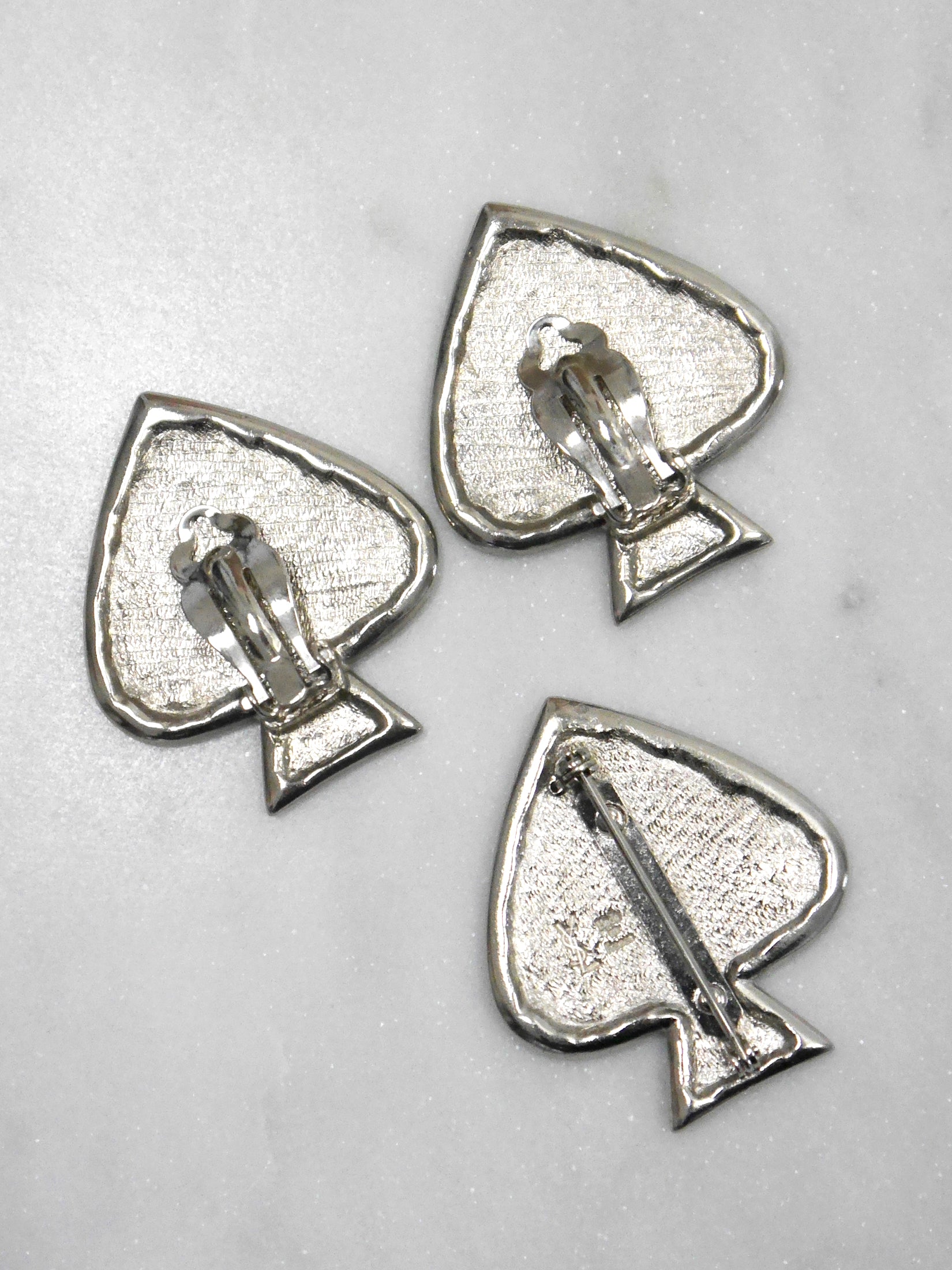 YVES SAINT LAURENT Vintage Spade Brooch & Clip-On Earrings Jewelry Set
