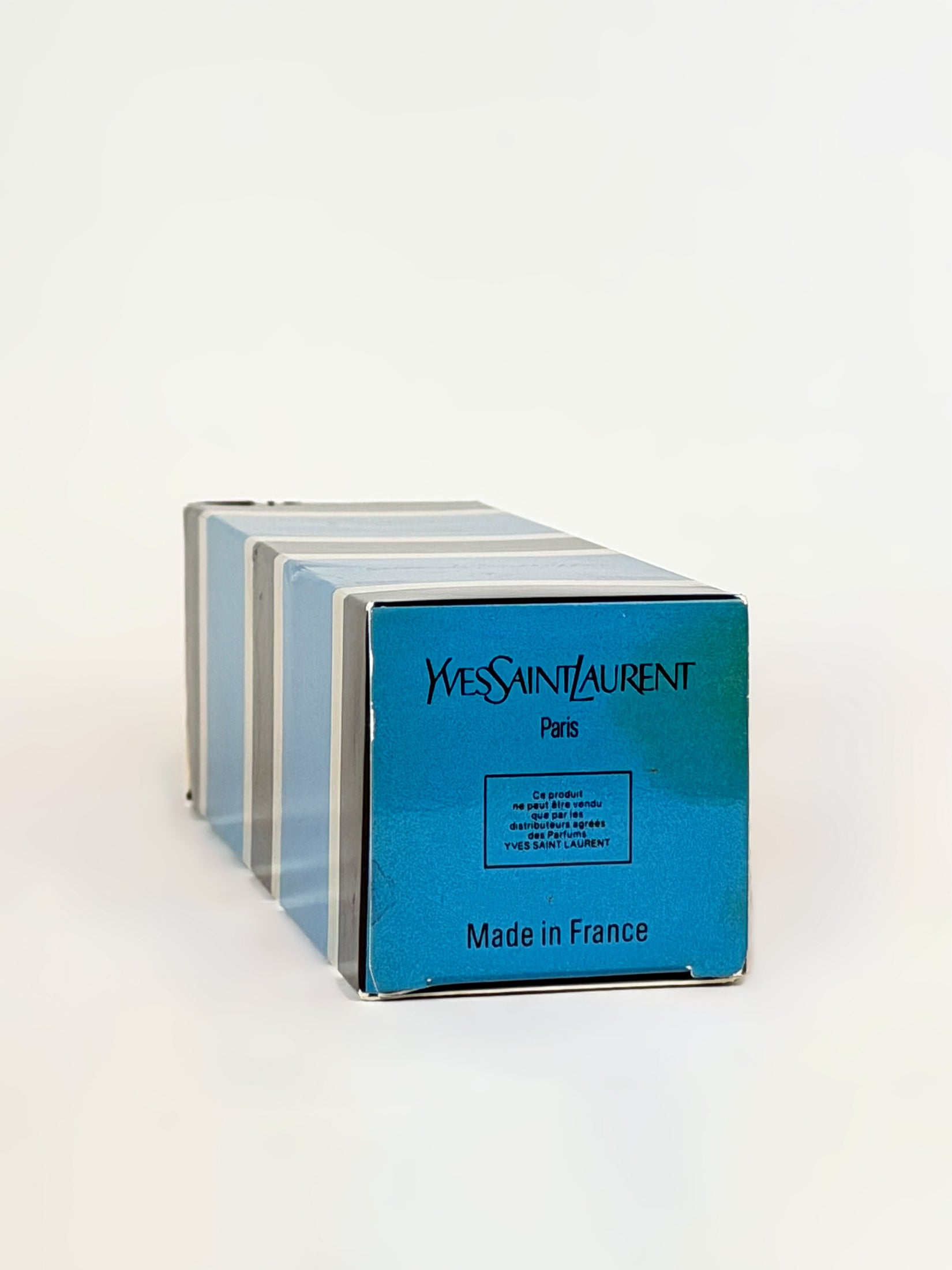 Full bottle with original box, unused, and complete with the original leaflet showcasing the YSL Rive Gauche fragrance range. Light signs of wear and age to both bottle and box. This is a rare vintage fragrance from the 1980s with the original Rive Gauche formulation - extremely hard to find, especially in this large size and with the original box.